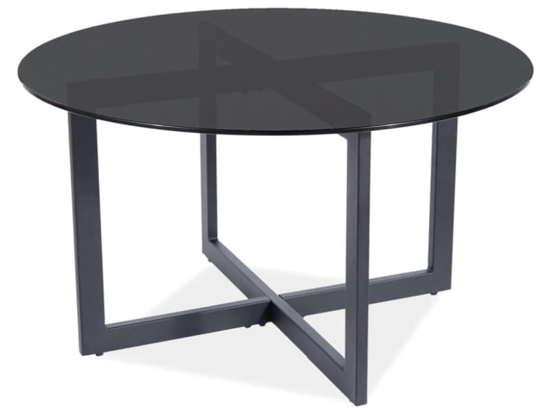 Ława, blat: szkło hartowane dymione, stelaż: metal, kolor: czarny mat.