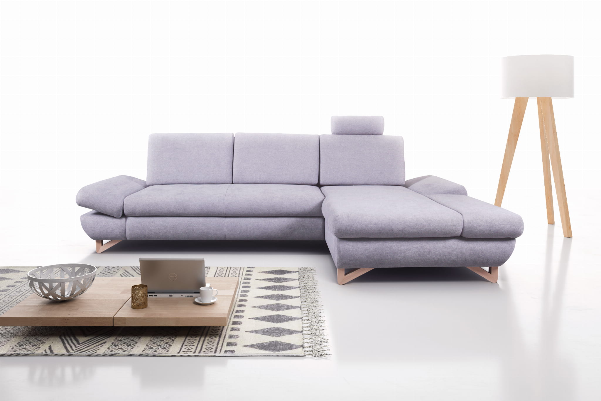 - szerokość 284 cm / wysokość 82-100 cm / głębokość 96-166 cm