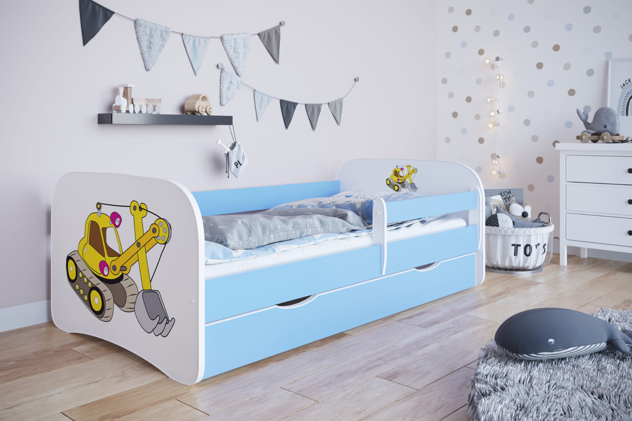 Łóżko wykonane jest z wysokiej jakości płyty meblowej, dostępne w kilku wariantach kolorystycznych.