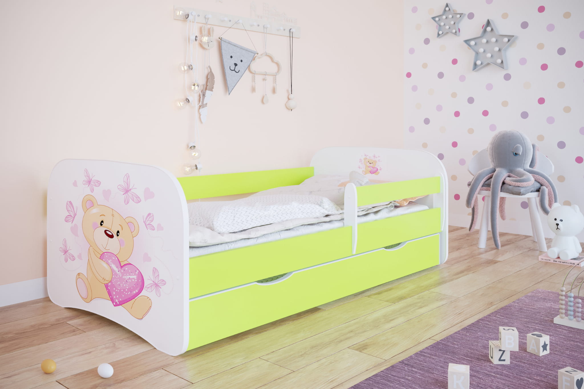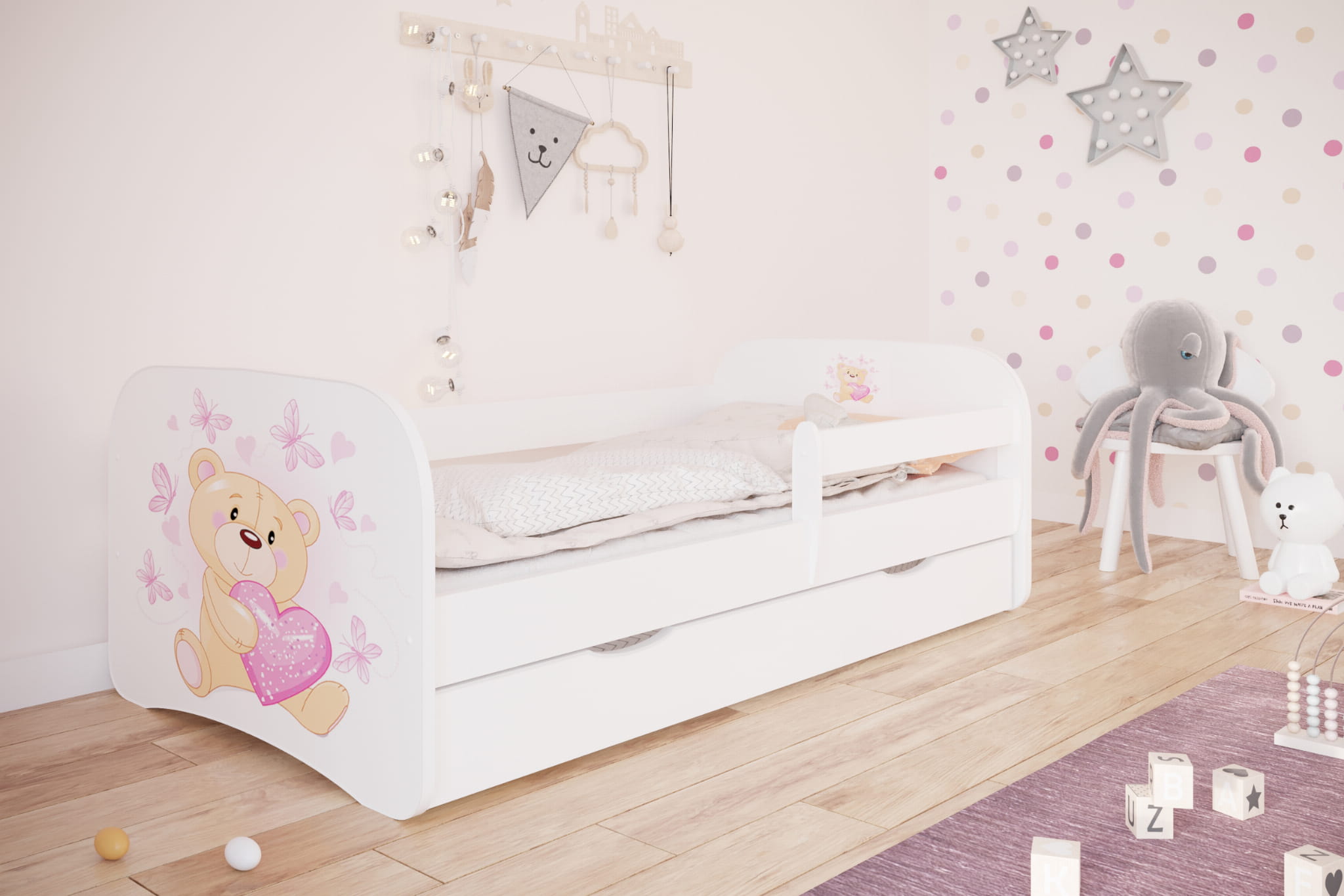 Łóżko wykonane jest z wysokiej jakości płyty meblowej, dostępne w kilku wariantach kolorystycznych.