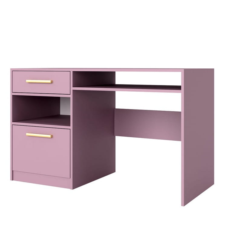 Biurko z kolekcji Bali z szufladą, szafką, otwartą wnęką i półką pod blatem. Biurko w modnych, pastelowych kolorach. Biurko będzie funkcjonalnym miejscem do nauki, odrabiania lekcji. Wykonane z wysokogatunkowej płyty laminowanej wykończonej okleiną ABS.
