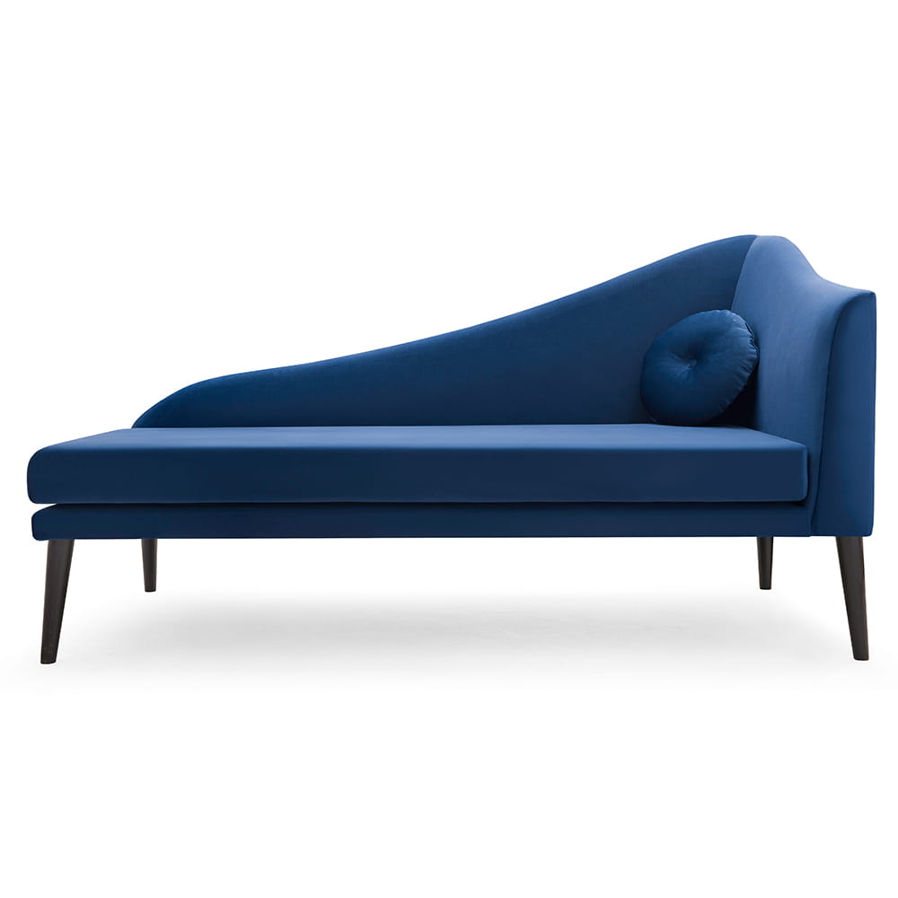 Finezyjna linia oparcia oraz pikowana ozdobna poduszka w zestawieniu z drewnianymi nóżkami podkreślają stylowy wygląd szezlonga BELLA.