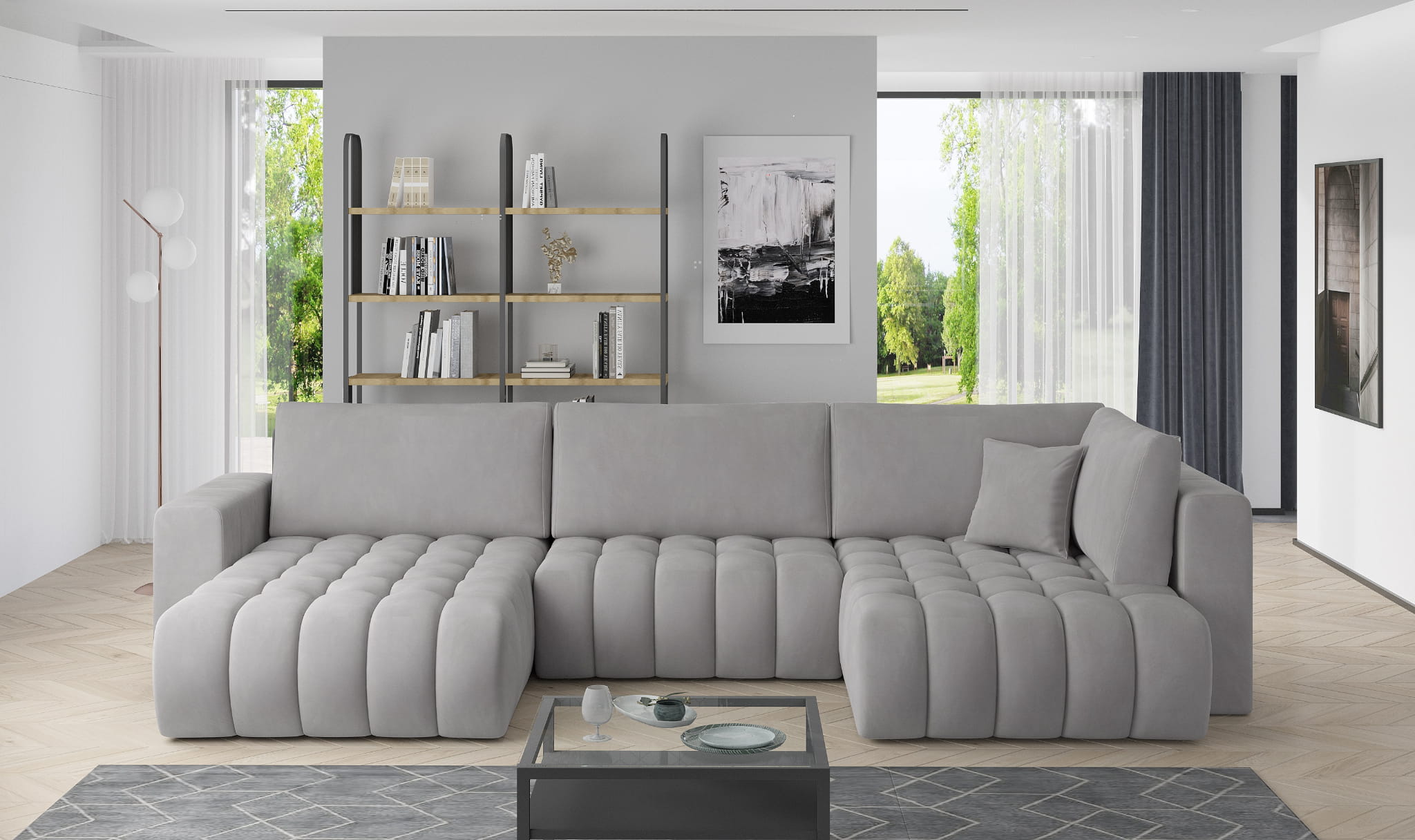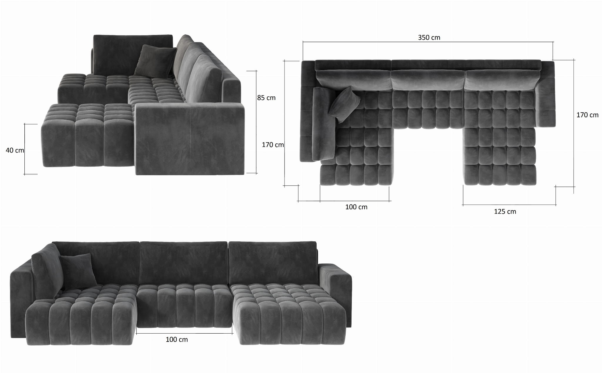 Powierzchnia do wypoczynku dziennego wynosi 350 x 170 x 85 centymetrów, a do nocnego aż 300 x 120 centymetrów. Na takiej przestrzeni naprawdę można dobrze wypocząć! Poza gabarytem naszego wyjątkowego mebla w kształcie litery U, należy wspomnieć również o komforcie, który ma Ci do zaoferowania. Zarówno siedzisko, jak i oparcie naszego Bonito zostało wykonane z innowacyjnej wysokoelastycznej pianki HR, a także pianki T25, która szybko reaguje na zmianę naszej pozycji, dzięki czemu lepiej dopasowuje się ona do naszego ciała zarówno podczas siedzenia, jak i leżenia bądź spania.