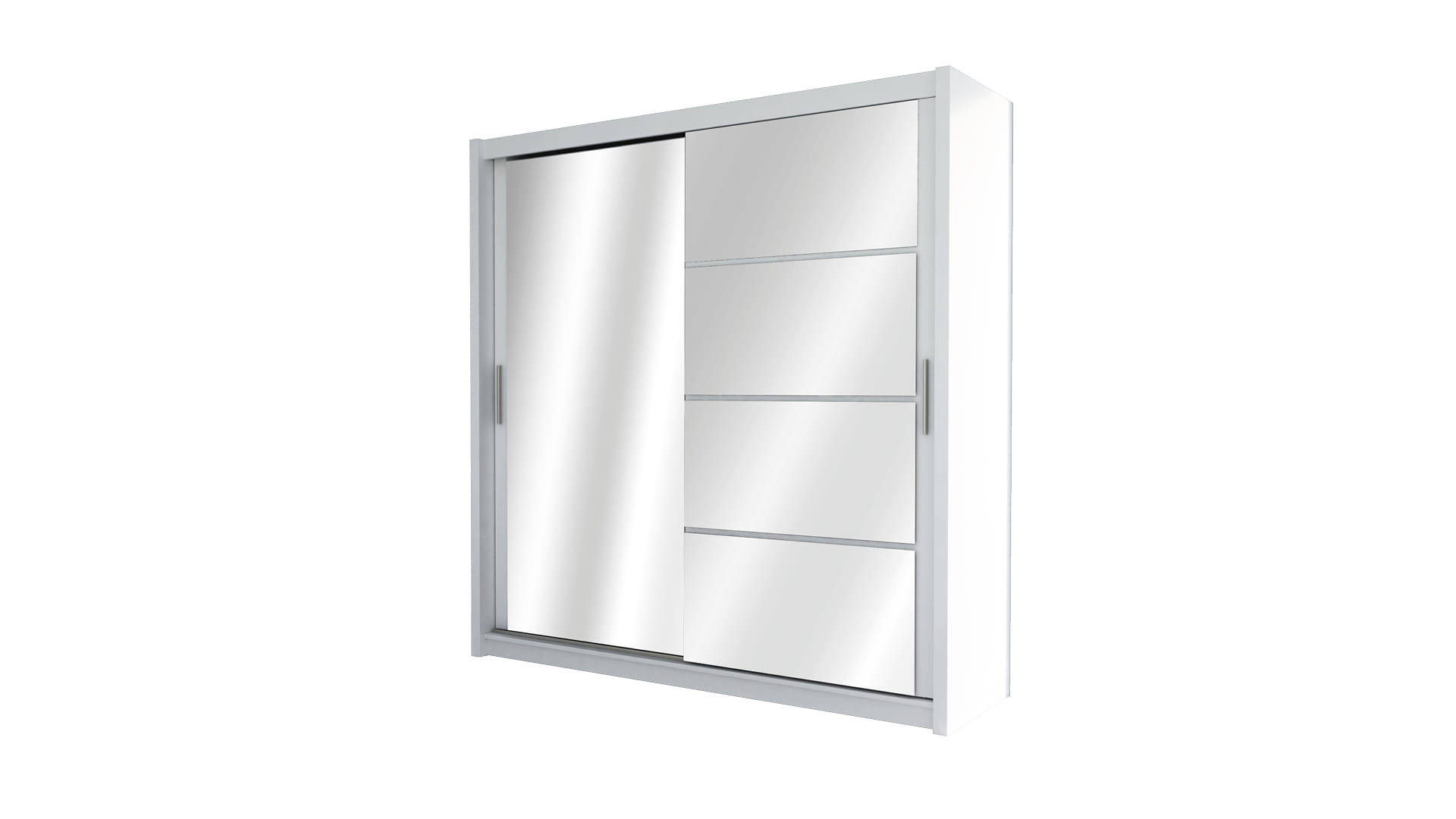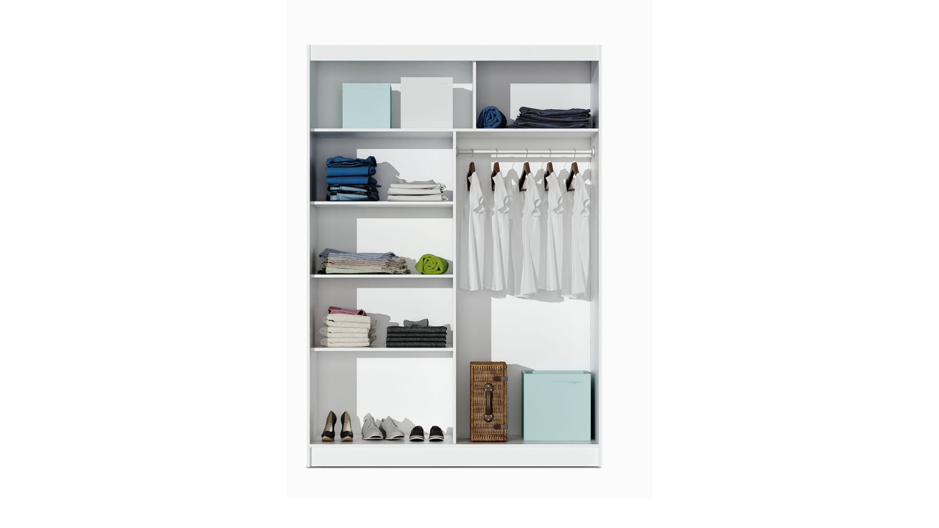 Wyposażenie: aluminiowe prowadnice, dolne wózki na łożyskach, listwa dekoracyjna, 1 drążek, półki