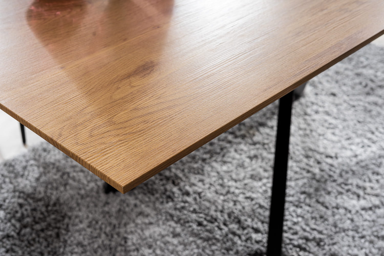 Stół rozkładany, blat: MDF+okleina, stelaż: metal, kolor: dąb / czarny mat.