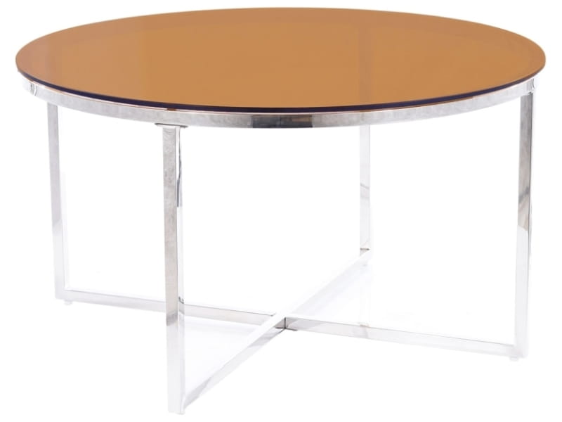 Ława, blat: szkło hartowane bursztynowe, stelaż: stal nierdzewna, kolor: srebrny.