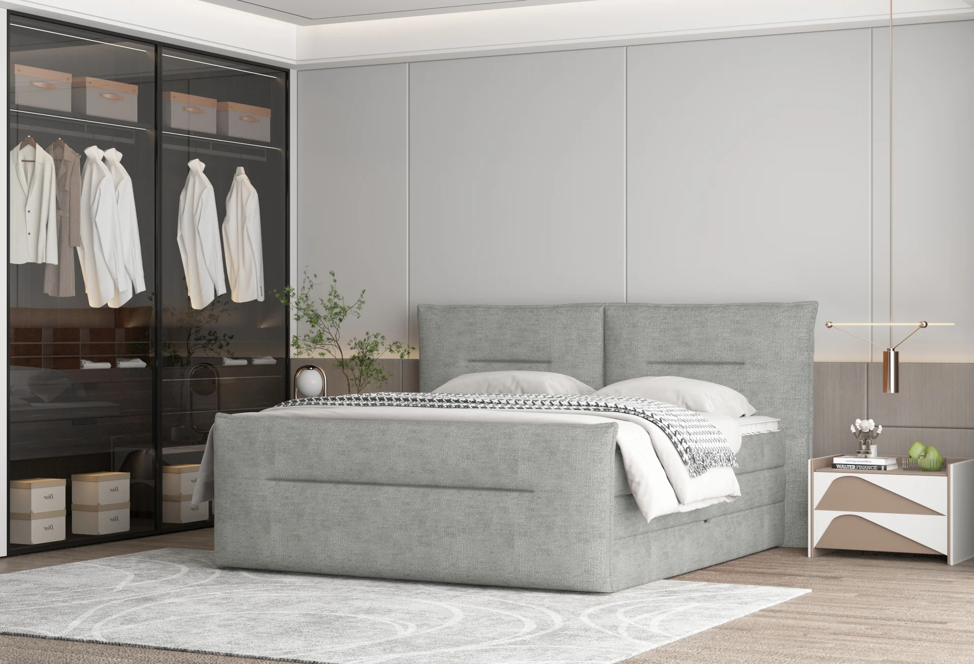 To klasyczne łoże wyróżniające się pięknymi pikowaniami. Zostało wyposażone w materac bonellowy na dole oraz kieszeniowy 7-strefowy u góry. Do wyboru są 3 rodzaje szerokości, które pozwalają dobrać idealny rozmiar powierzchni spania. CARINA posiada 2 pojemniki na pościel, ułatwiające przechowywanie dodatkowego kompletu pościeli. Dodatkowo obecność toppera podwyższa jakość wypoczynku i sprawia, że łóżko użytkuje się z niezwykłą przyjemnością.