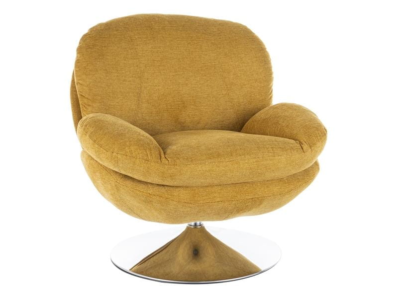 Fotel, tapicerka: tkanina Brego, stelaż: metal, kolor: curry / chrom. Siedzisko obracane w zakresie 360st.