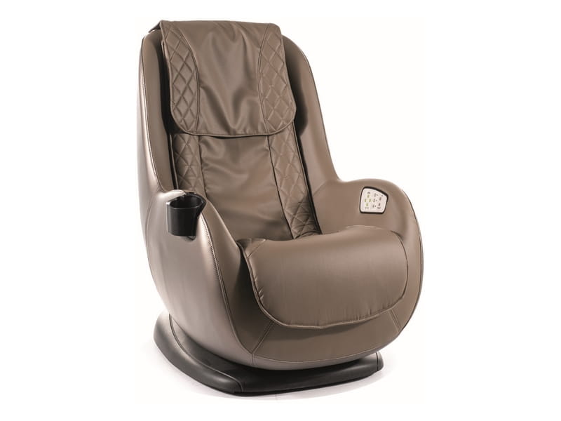 Fotel masujący, skóra syntetyczna, kolor: beż, tap. 224 + brąz, tap. 225 (tył). Port USB, uchwyt na kubek. Do wyboru kilka trybów masażu z możliwością regulacji szerokości pola i miejsca masowania.