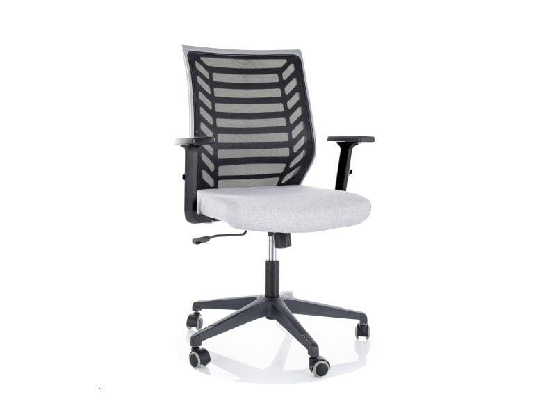 Fotel obrotowy, tapicerka: tkanina + siatka, stelaż: tworzywo, kolor: szary + czarny / czarny. Mechanizm TILT, regulowane podłokietniki.