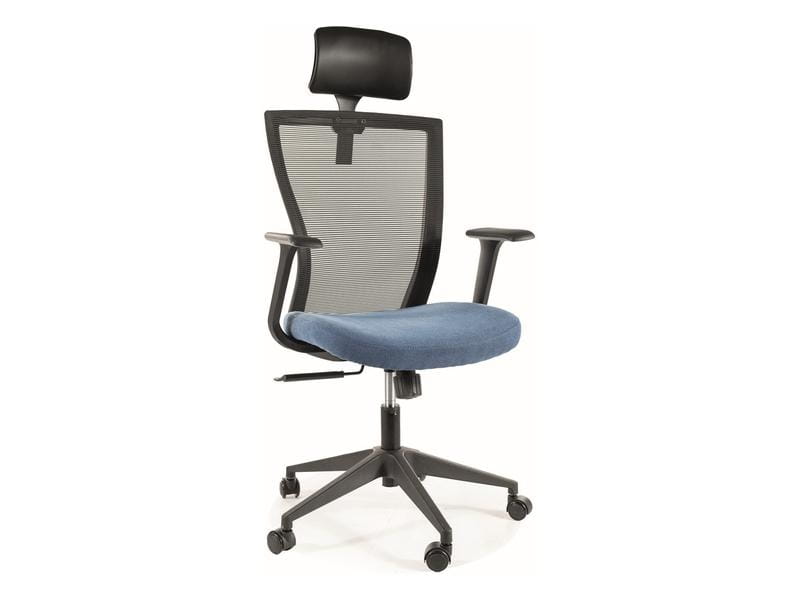 Fotel obrotowy, tapicerka: siatka + tkanina, stelaż: tworzywo, kolor: niebieski. Mechanizm TILT, regulowany zagłówek.