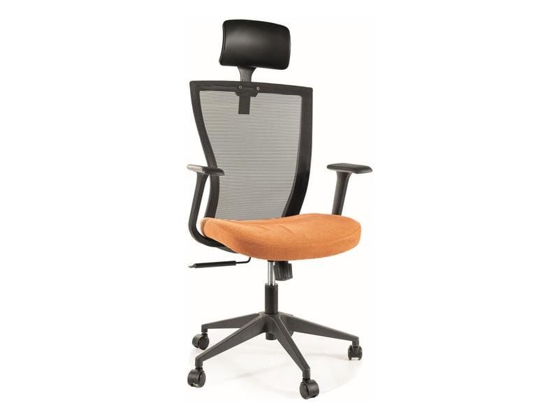 Fotel obrotowy, tapicerka: siatka + tkanina, stelaż: tworzywo, kolor: pomarańczoewy. Mechanizm TILT, regulowany zagłówek.