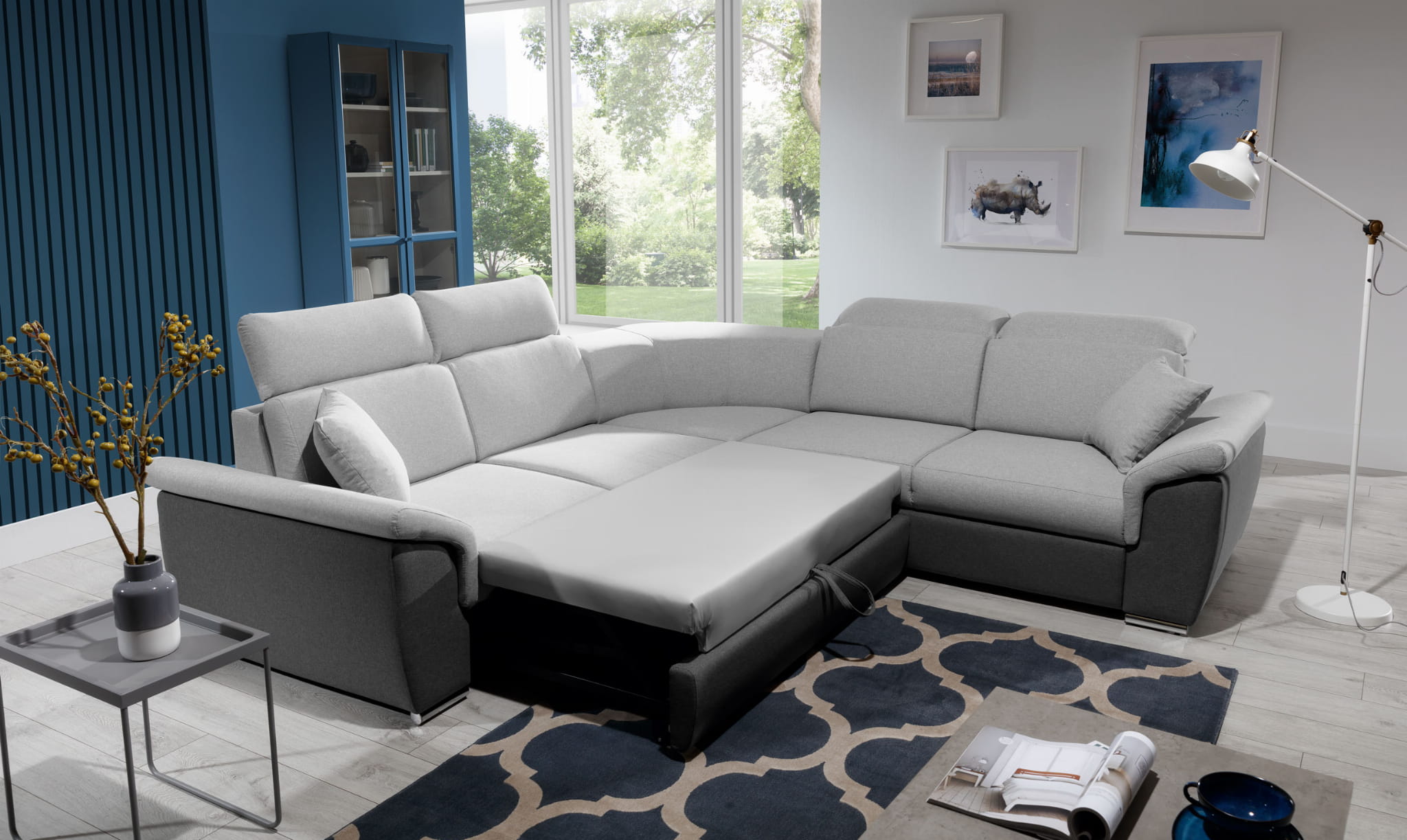 - narożnik posiada funkcję spania, rozkładane za pomocą automatu Delfin. Wysuwa się wózek z dolnej części narożnika i na końcu podciąga się do góry przy pomocy przymocowanego ucha.