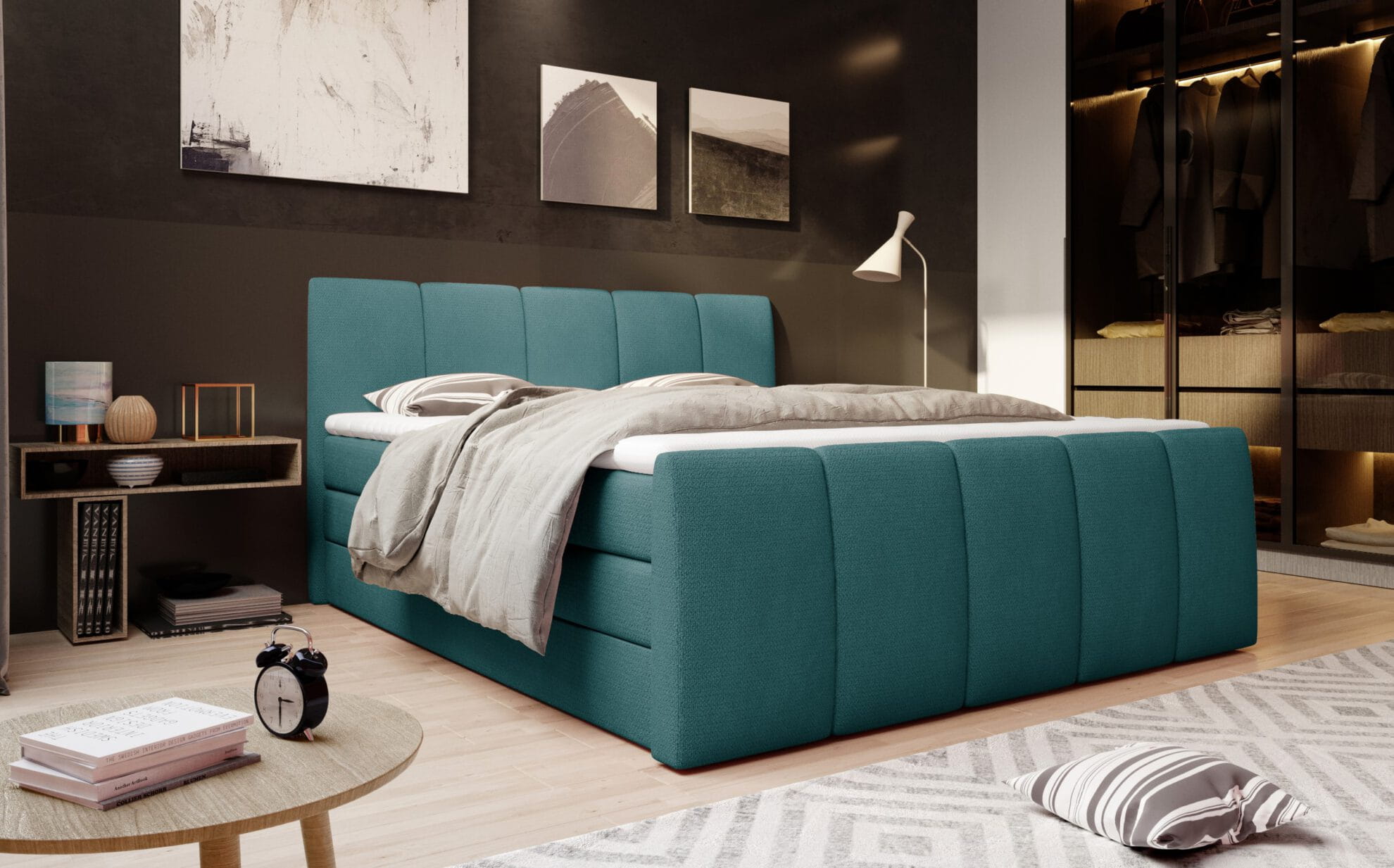 Łóżko FRESCO przypadnie do gustu zarówno miłośnikom klasycznych wnętrz, jak i tych bardziej nowoczesnych. Dzięki pionowym przeszyciom na wezgłowiu i weznóżu model ten nabiera swoistego charakteru. Obecność pojemników to dodatkowe miejsce na przechowywanie kompletu pościeli, a połączenie dwóch materacy zapewnia komfortowy wypoczynek.
