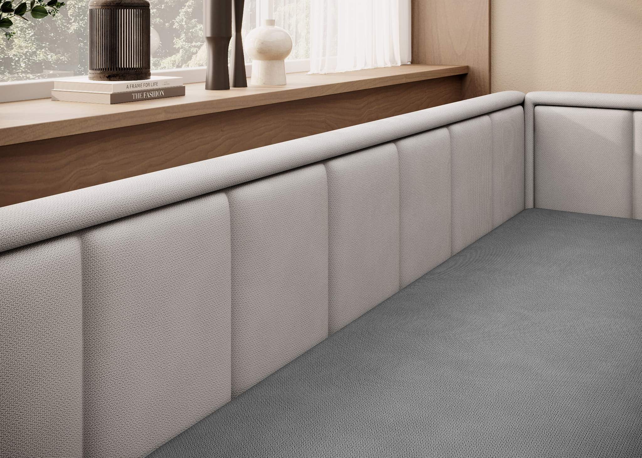 - Wypełnienie z dwóch rodzajów pianki poliuretanowej jest miękkie i elastyczne, a przy tym niepodatne na powstawanie zagnieceń,
