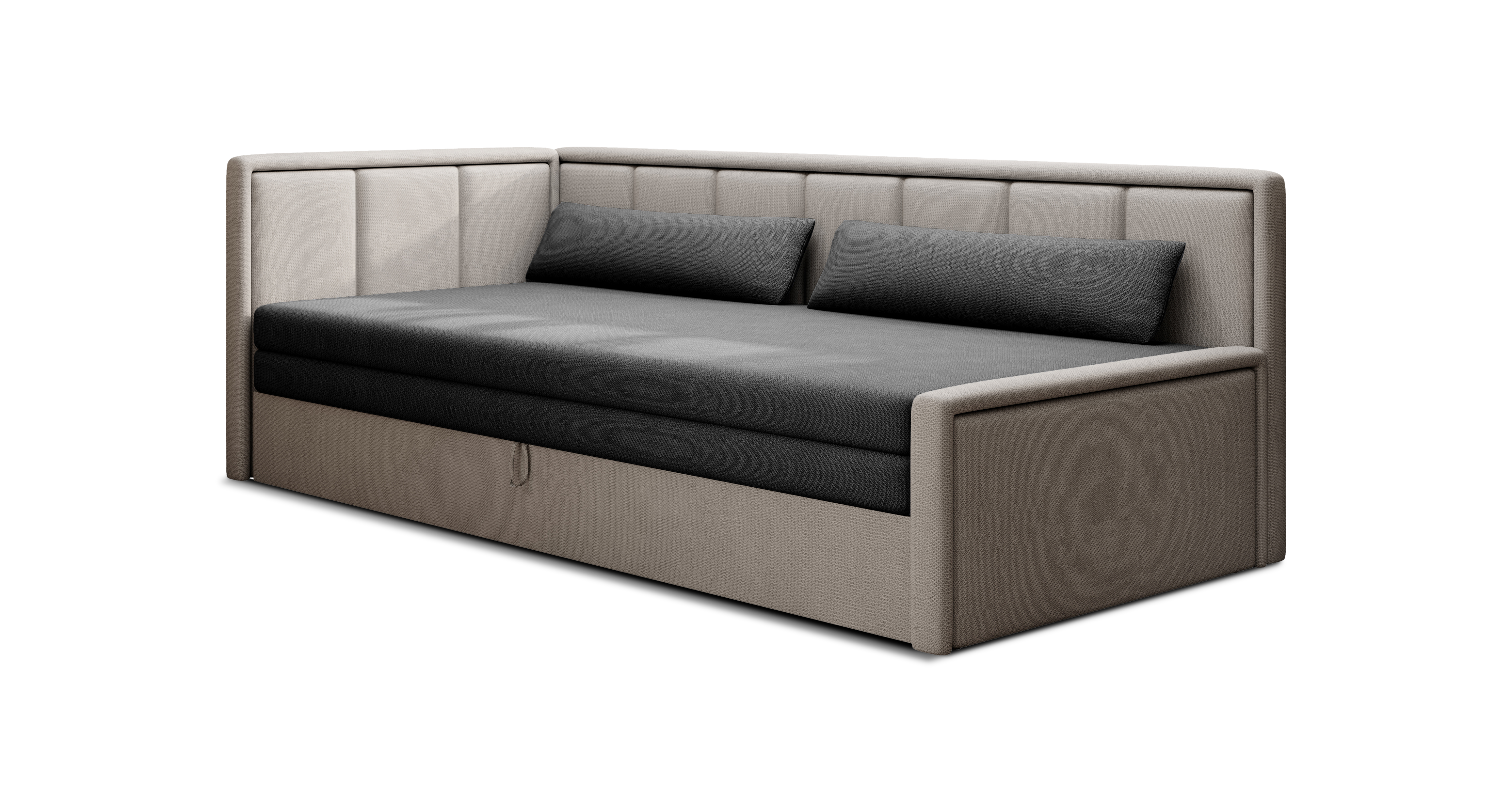 Kanapa z funkcją spania Fulgeo to rozwiązanie zaprojektowane z myślą o wymagającym, nowoczesnym użytkowniku. Znajdziesz tutaj zatem nie tylko minimalistyczną i przyjemną dla oka bryłę, ale również funkcjonalny system rozkładania, za sprawą którego szybko i sprawnie przemienisz całość w wygodne posłanie. Dzięki temu nasza propozycja idealnie sprawdzi się w kawalerce, salonie z aneksem czy pokoju młodzieżowym, gdzie na 100% wykorzysta dostępne miejsce, nie obciążając przy tym otoczenia.
