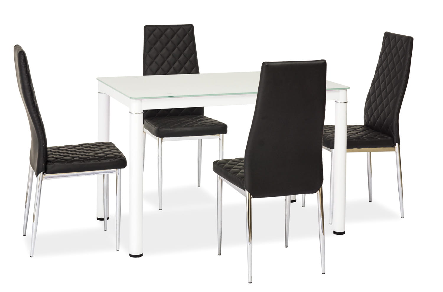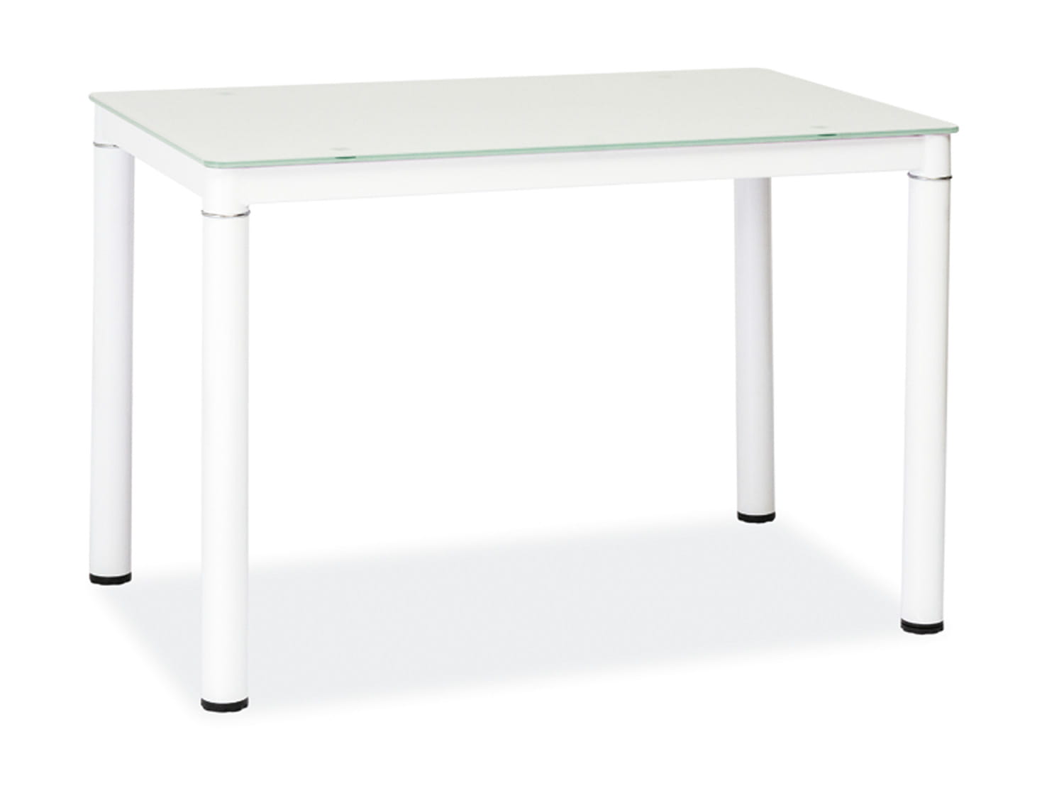 Stół, blat: szkło hartowane, kolor: biały / stelaż: metal malowany, kolor: biały.