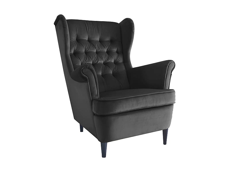 Fotel, tkanina aksamit, kolor: wg próbnika Bluvel 19 czarny, drewno, kolor: wenge.