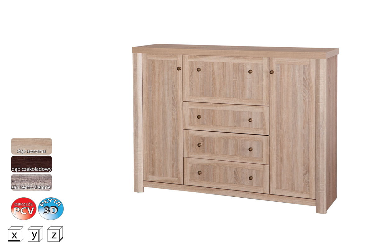 - boki i fronty zwieńczone listwą MDF