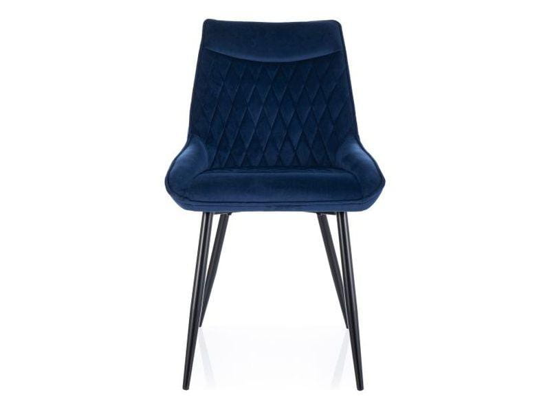 Krzesło, tapicerka: tkanina aksamit Bluvel, stelaż: metal, kolor: 86 granatowy / czarny mat. Rączka na tyle oparcia.