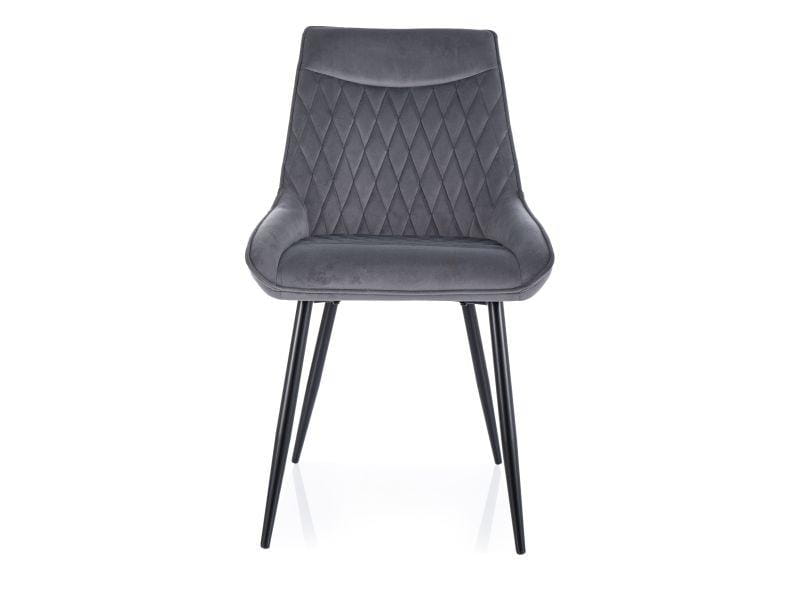 Krzesło, tapicerka: tkanina aksamit Bluvel, stelaż: metal, kolor: 14 szary / czarny mat. Rączka na tyle oparcia.