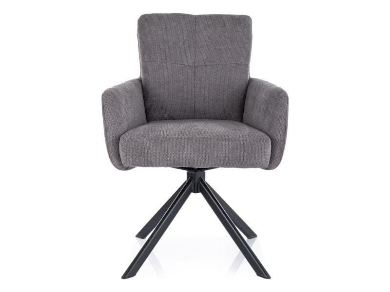 Krzesło, tapicerka: tkanina Vardo, stelaż: metal, kolor: 11 szary / czarny mat. Funkcja auto-return - siedzisko obracane w zakresie 180st, z funkcją powrotu do pierwotnej pozycji. Sprężyny kieszeniowe w siedzisku.