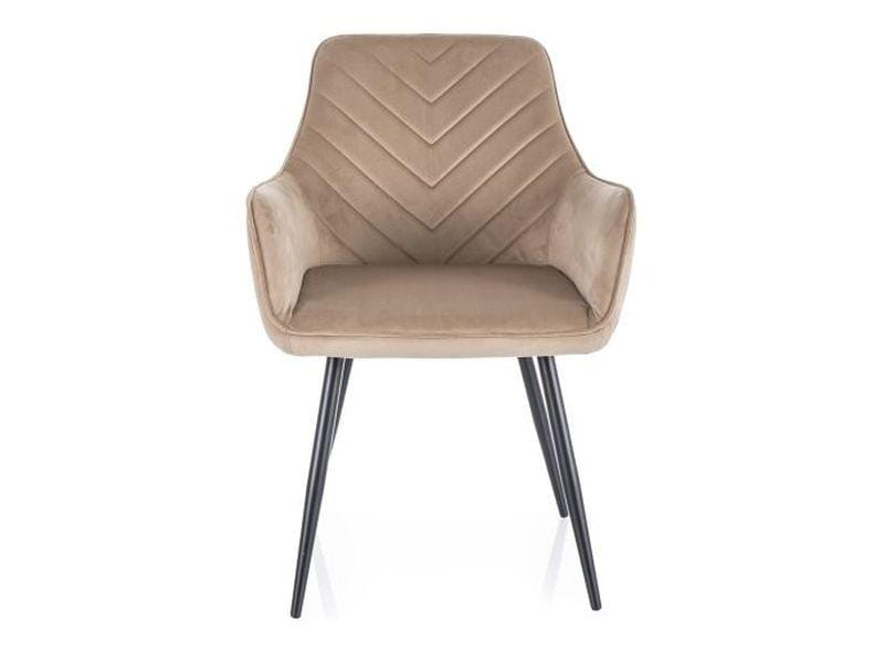Krzesło, tapicerka: tkanina aksamit Bluvel, stelaż: metal, kolor: 28 beżowy / czarny mat.
