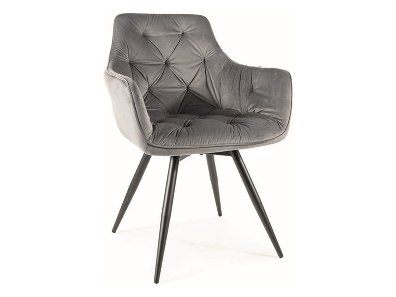 Krzesło, tkanina aksamit Bluvel, kolor: szary 14, stelaż: metal, czarny mat. Siedzisko obracane w zakresie 180st, z funkcją powrotu do pierwotnej pozycji.