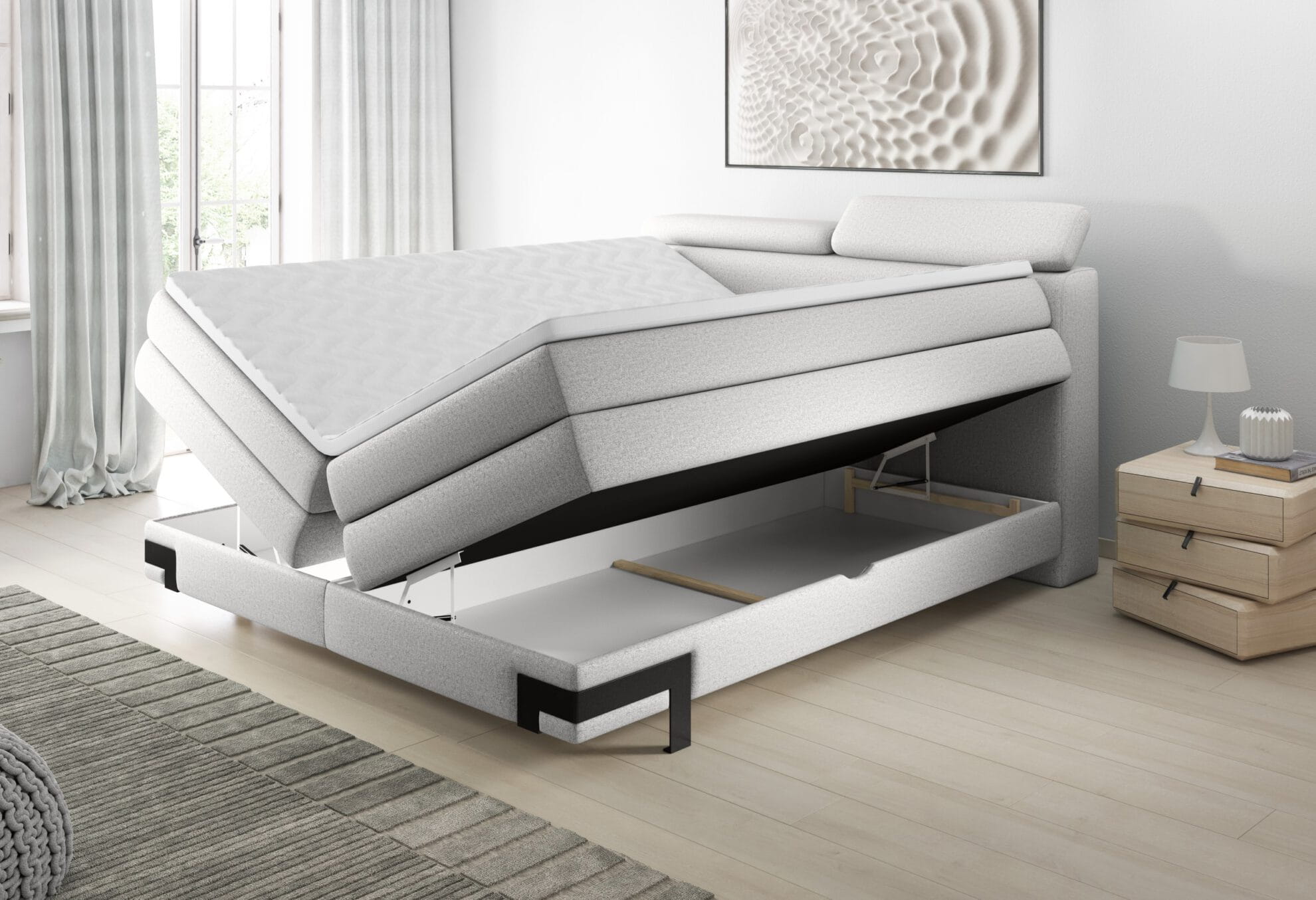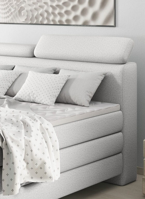 To model dla koneserów wygody i dobrego wzornictwa. Oprócz niekwestionowanego wyglądu, KANO przypadnie do gustu każdemu, kto ceni sobie wygodę i komfort. Zastosowanie dwóch materacy zdecydowanie podnosi jakość snu. Regulowane zagłówki umożliwiają indywidualne dopasowanie wezgłowia do użytkownika. Dwa, sporych rozmiarów pojemniki na pościel, to dodatkowe miejsce do przechowywania kocy i poduszek, a ozdobne nóżki sprawiają, że model ten jest wyjątkowy i nowoczesny.