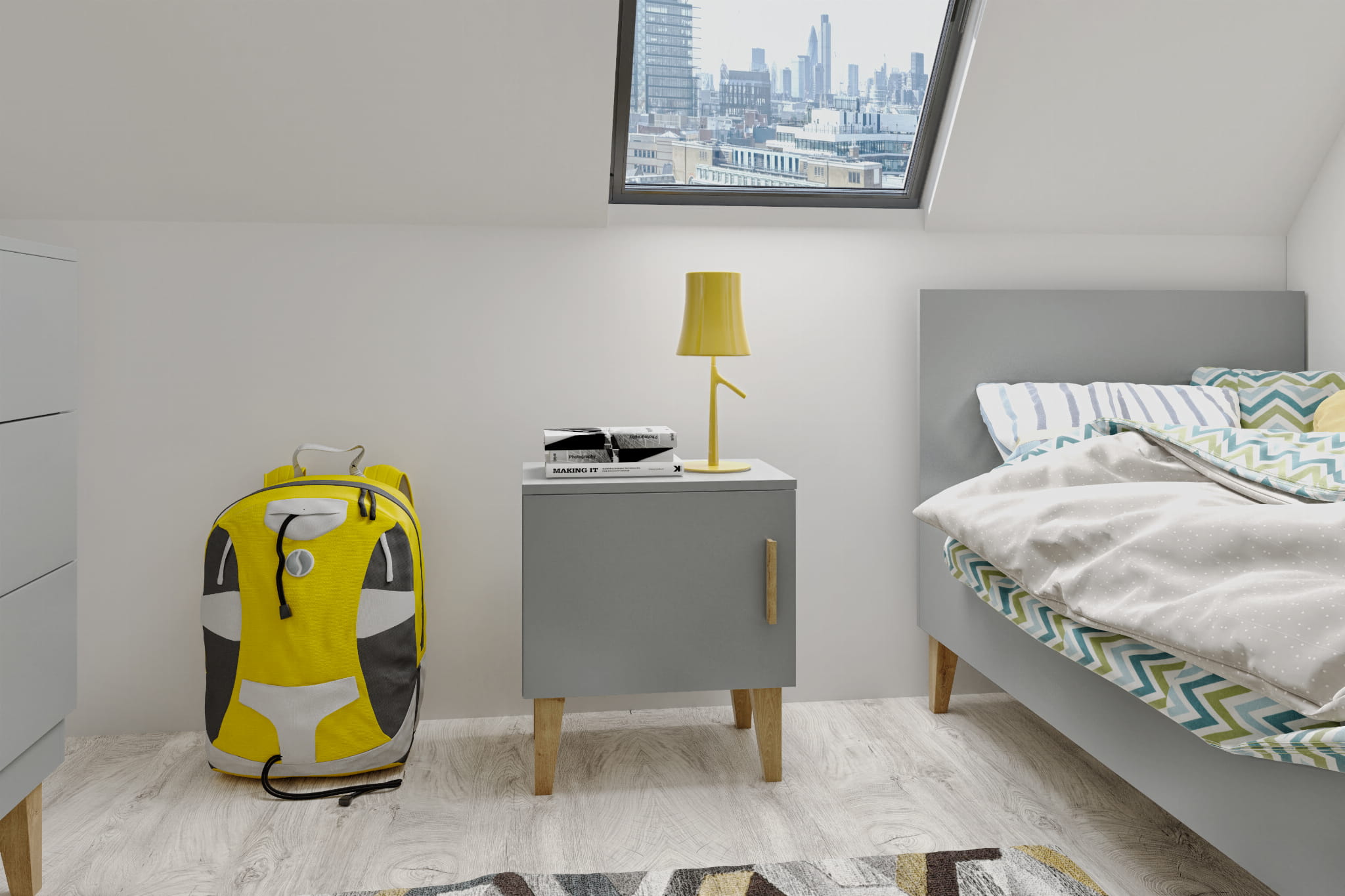 Nowoczesna szafeczka nocna z kolekcji KUBI wykonana została z płyty meblowej 18mm