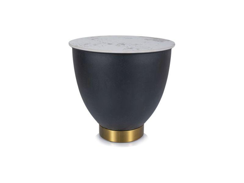 Ława, blat: ceramika, stelaż: metal, kolor: biały połysk – efekt marmuru / czarny mat + złoty szczotkowany.