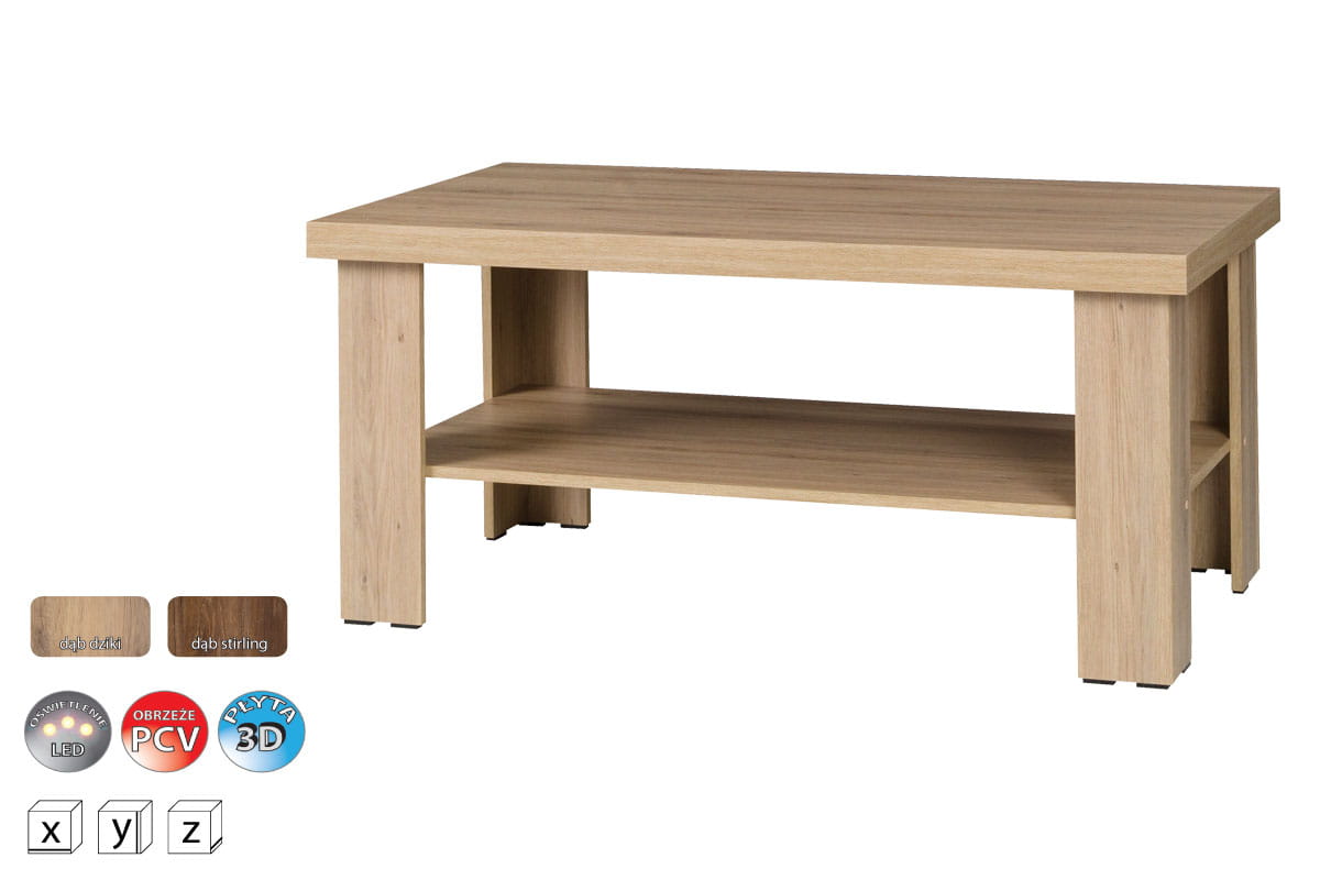 Połączenie klasycznego wzornictwa z prostą formą nadaje meblom Amber nowoczesności, a dodatkowe oświetlenie LED podkreśli ich atrakcyjność oraz wprowadzi do wnętrza przytulny i ciepły klimat. Meble wykonane zostały z wysokiej jakości płyty meblowej laminowanej w kolorze dąb dziki, a obrzeża wykończone zostały okleiną PCV. Szeroki wybór brył, jaki posiada kolekcja Amber, pozwala na urządzenie zarówno małych, jak i dużych pomieszczeń.