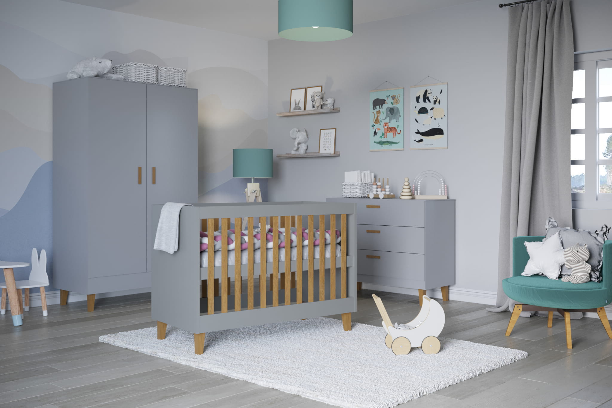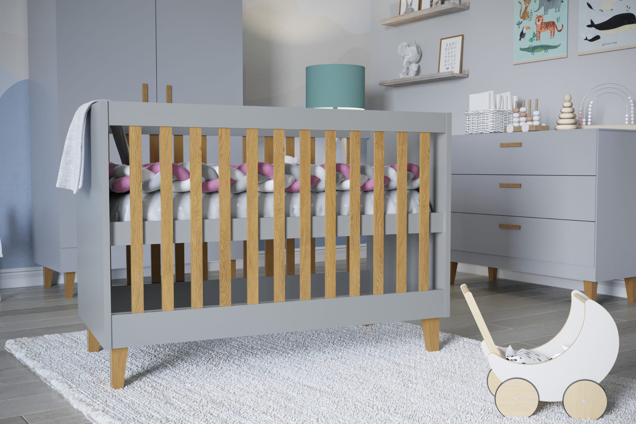 Łóżeczko niemowlęce Kubi szare