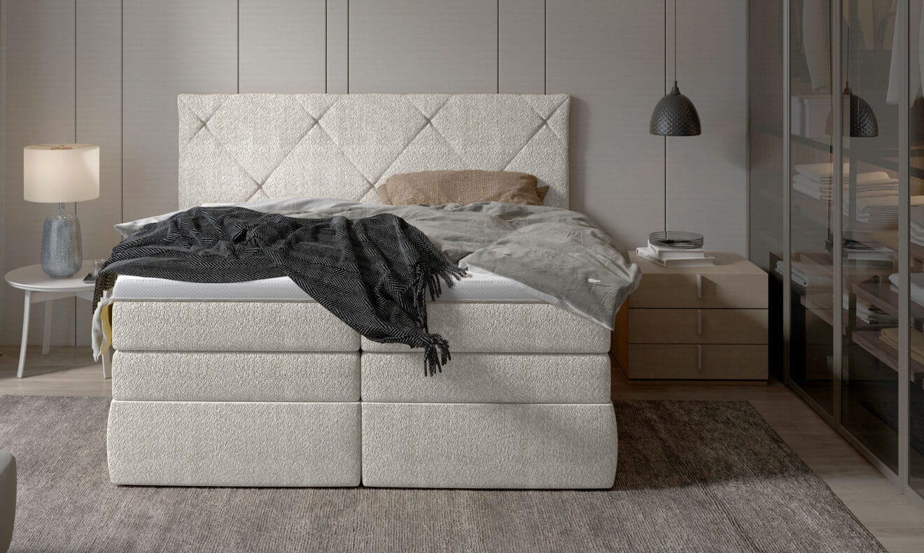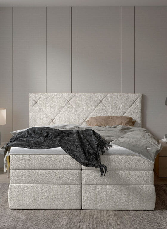 LUNGO to piękne i przede wszystkim bardzo wygodne łóżko kontynentalne z przeszywanym zagłowiem. Łóżko z pewnością będzie stanowiło ozdobę i główny element każdej sypialni. Charakterystyczne cechy łóżka to funkcjonalność i nowoczesne wzornictwo. Łóżko posiada pojemnik na pościel otwierany za pomocą podnośników sprężynowych. W cenę łóżka wliczony jest materac kieszeniowy 7-strefowy oraz bonellowy.