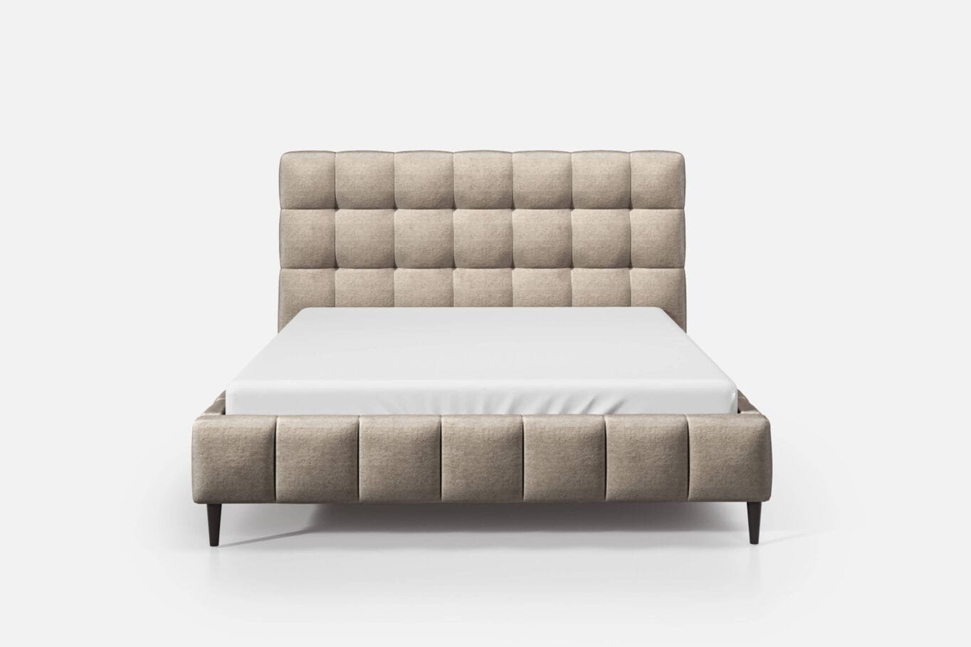 Łóżko tapicerowane Magic o wysokim zagłówku (122 cm) zachwyca elegancją i przytulnością. Jego wyjątkowy design obejmuje "miękką" mozaikę przeszyć i pików na zagłówku oraz pionowe przeszycia na ramie, nadając łóżku miękkie, puszyste kształty. Czarne, wysokie na 20 cm nóżki dodają lekkości całej konstrukcji. Takie rozwiązanie to nie tylko zabieg estetyczny, ale również praktyczny – polecany w sypialniach z ogrzewaniem podłogowym, ułatwia utrzymanie czystości pod łóżkiem, umożliwiając dostęp dla robotów sprzątających.