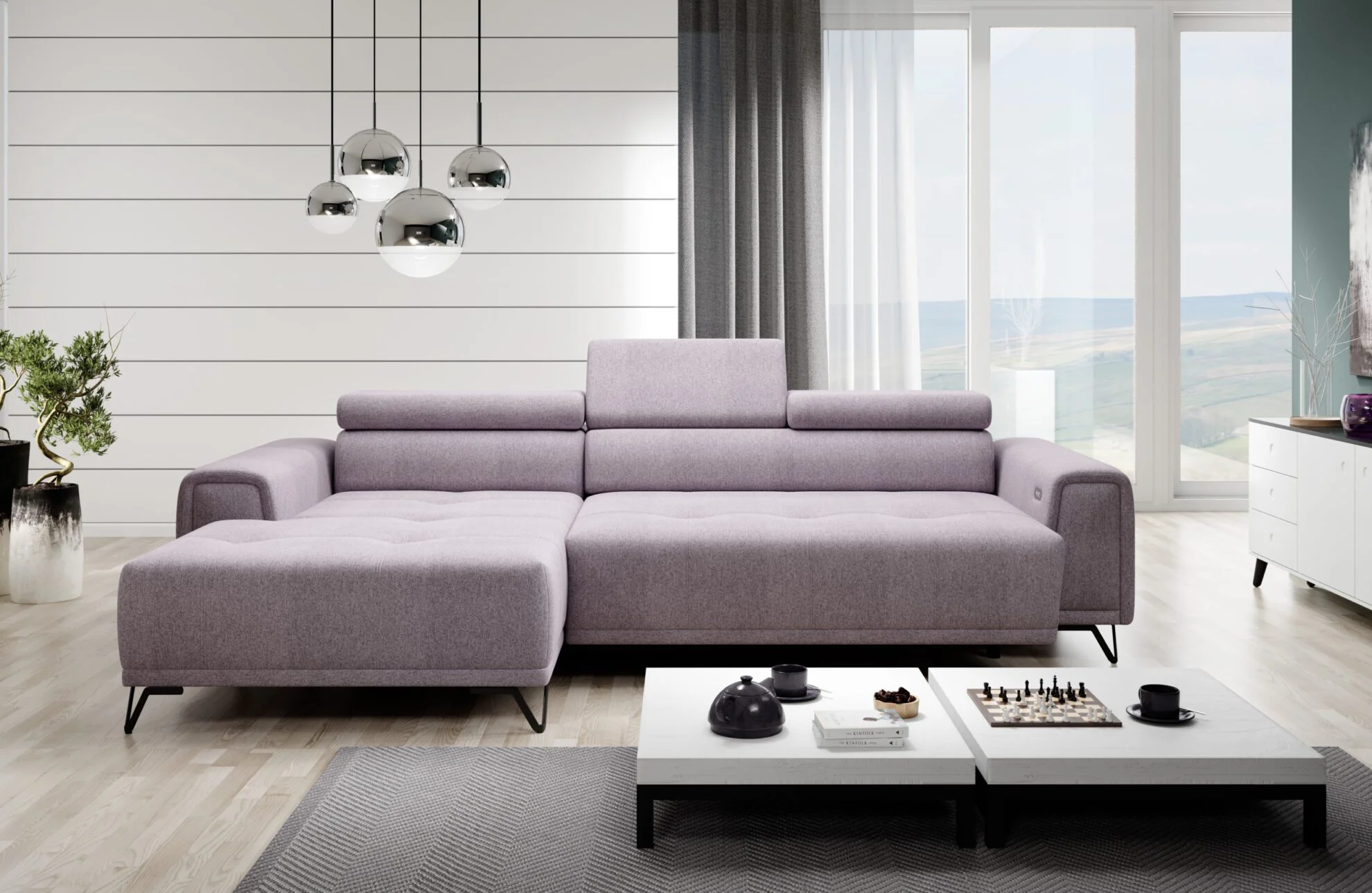 Narożnik Marvin jest propozycją dla wszystkich, którzy preferują nowoczesny design oraz oczekują wysokiego komfortu. Elektrycznie wysuwane siedzisko i ruchome zagłówki umożliwiają przyjęcie wygodnej pozycji w trakcie wypoczynku. Posadowiony na wysokich, czarnych nóżkach, które podkreślają linię mebla a delikatne piki i przeszycia na siedzisku dodają niewątpliwego uroku.