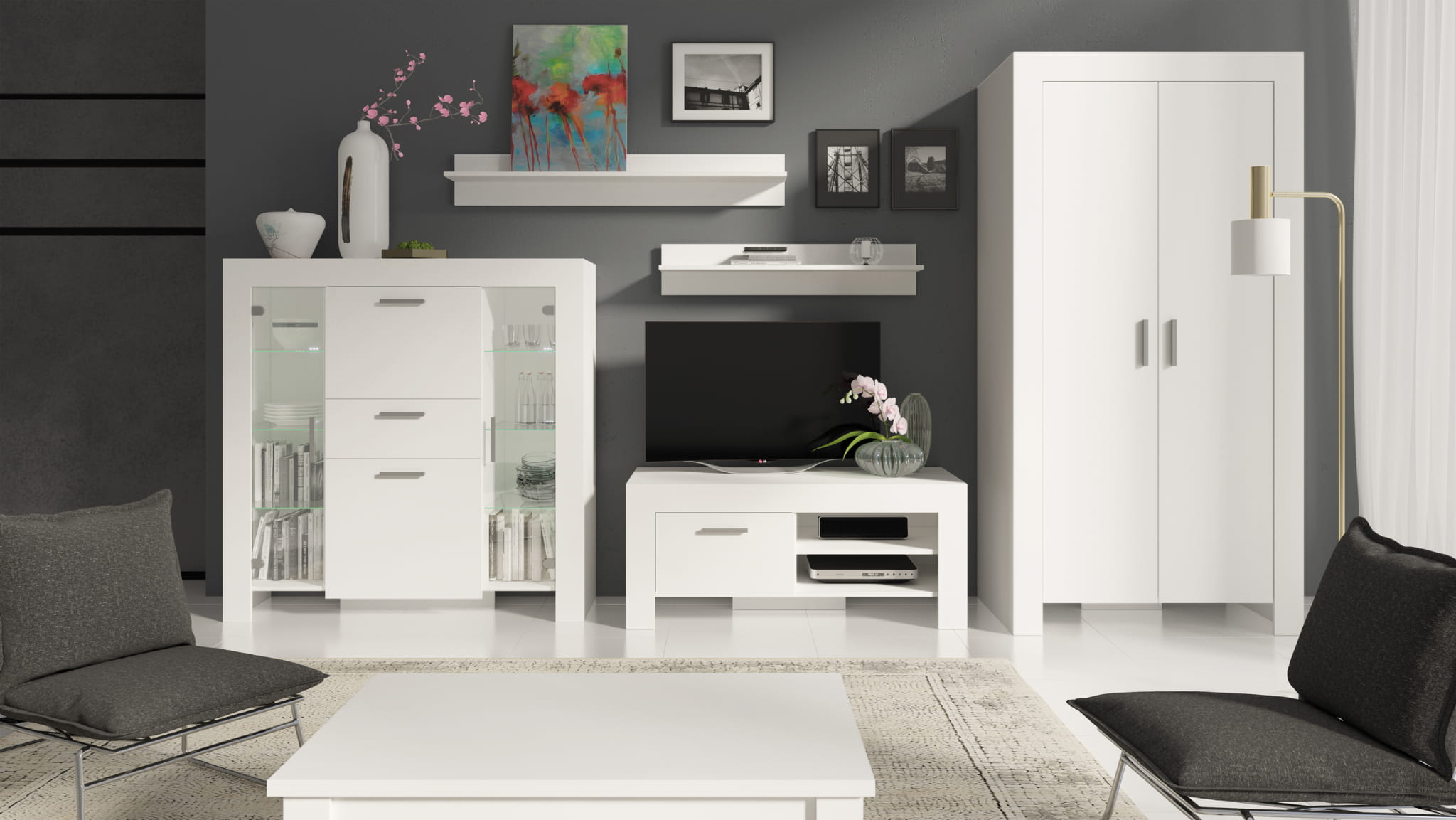 System CEZAR to nowoczesne meble pokojowe przygotowane w trzech wariantach kolorystycznych: Sonoma, Milano z kremowymi frontami oraz białe. Meble CEZAR wykonane z płyty laminowanej, krawędzie oklejone pcv. Charakteryzują się solidnym wykonaniem, nietuzinkowym designem oraz niebywałą funkcjonalnością. Bogaty wybór elementów brył w systemie pozwala na idealne dopasowanie do każdego rodzaju pomieszczenia. Doskonale pasują do salonu, pokoju młodzieżowego lub pokoju dziennego a także do sypialni.