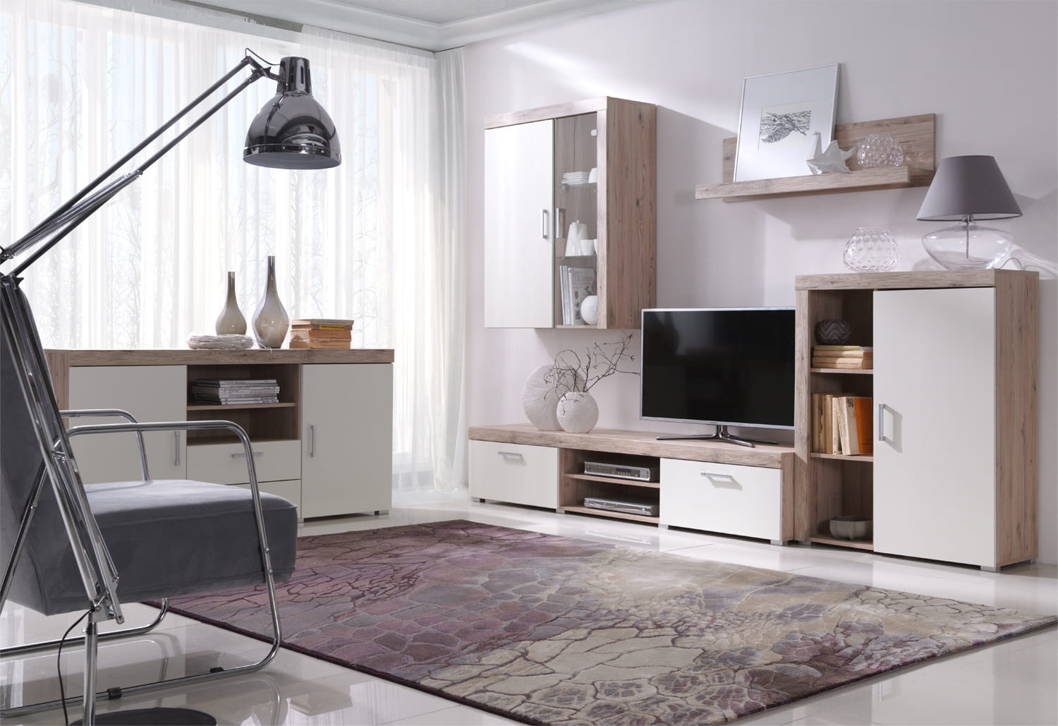 Meble Samba zachwycają swoim klasycznym kształtem oraz praktycznością. Wykonane są z wysokiej jakości płyty wiórowej laminowanej odpornej na zarysowania, z obrzeżami typu ABS. Doskonale pasują do salonu, pokoju młodzieżowego lub pokoju dziennego.