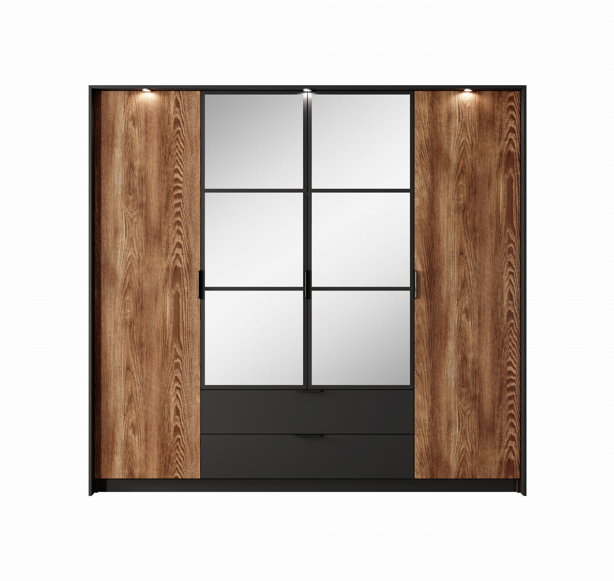 Oryginalne, stylowe i z charakterem – tak można określić meble z kolekcji MILTON. Meble, które zdecydowanie będą wspaniałą ozdobą sypialni. Harmonia pięknych dekorów: antracytu i kasztanu. Szafa, wyposażona w lustra, praktyczne szuflady i oświetlenie, komoda z pojemnymi szufladami oraz niezwykle wygodne łóżko z częściowo tapicerowanym wezgłowiem z przeszyciami oraz ciekawym oświetleniem, a wszystko w niezwykłej, głębokiej kolorystyce, tworzą idealny zestaw w loftowym stylu.