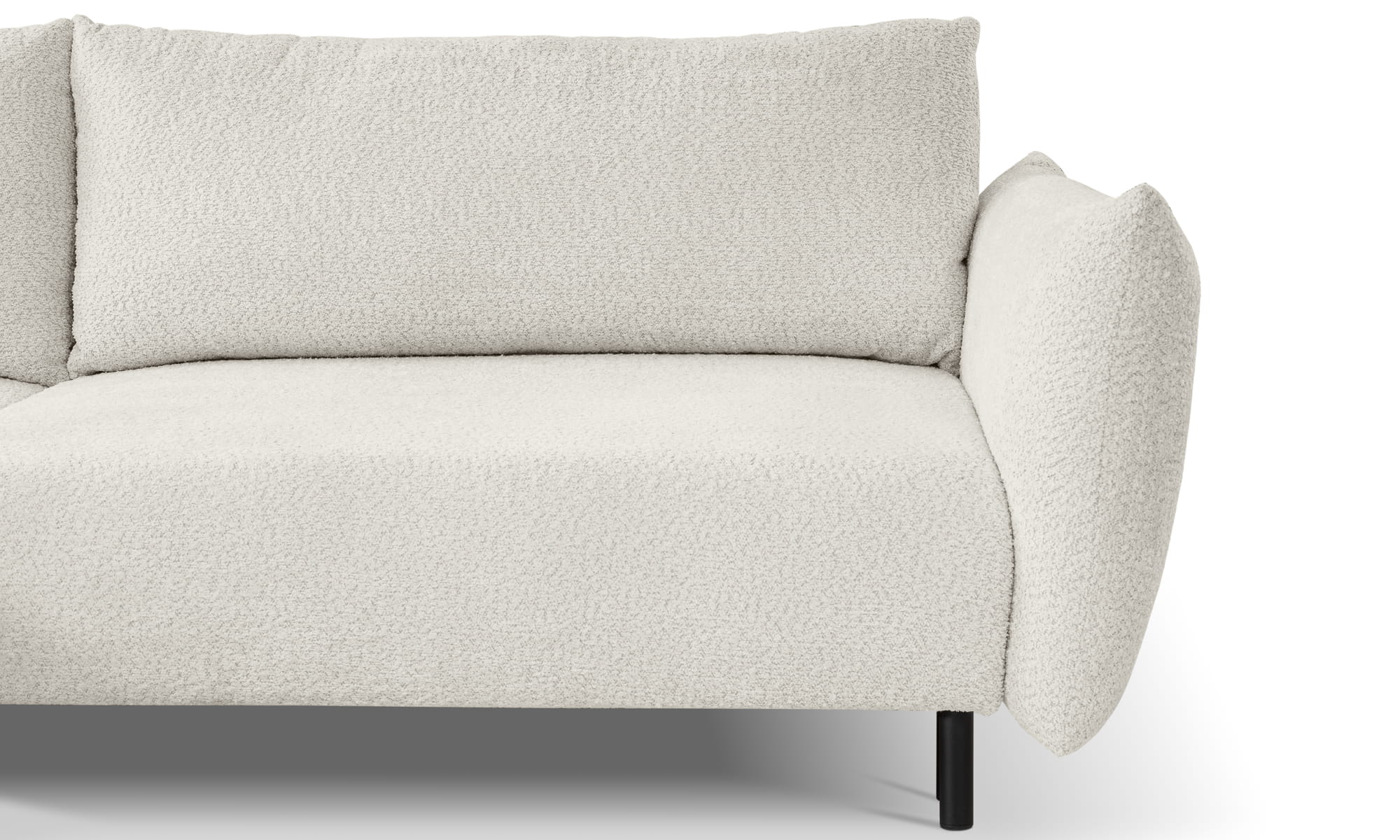 Charakterystyczne boki i duże poduszki oparciowe narożnika ADEL są zarówno ciekawym elementem, jak i gwarancją wygody, natomiast wysokie, smukłe, czarne nogi nadają konstrukcji wizualnej lekkości. Wszystko to tworzy idealną całość i sprawia, że mebel prezentuje się niezwykle okazale.
