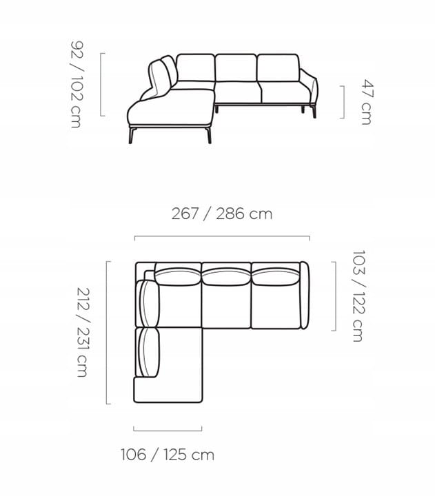 - Głębokość otomany: 197/177 cm
