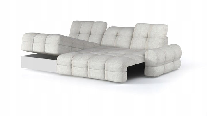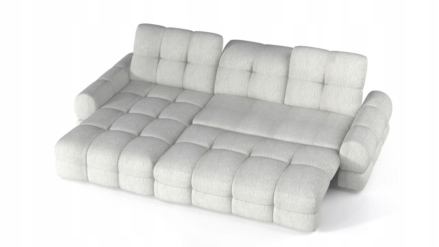 To narożnik zaprojektowany zgodnie z najnowszymi trendami. Masywne i wygodne siedzisko podkreślone głębokimi przeszyciami sprawia, że mebel prezentuje się oryginalnie i nietuzinkowo. Regulowane zagłówki pozwolające dostosować kąt nachylenia podwyższają jakość użytkowania. Zastosowanie długich wsuwów daje możliwość stworzenia komfortowej powierzchni spania. Dodatkowym atutem jest ukryty w otomanie pojemnik, w którym można przechować poduszki, czy ciepły koc.