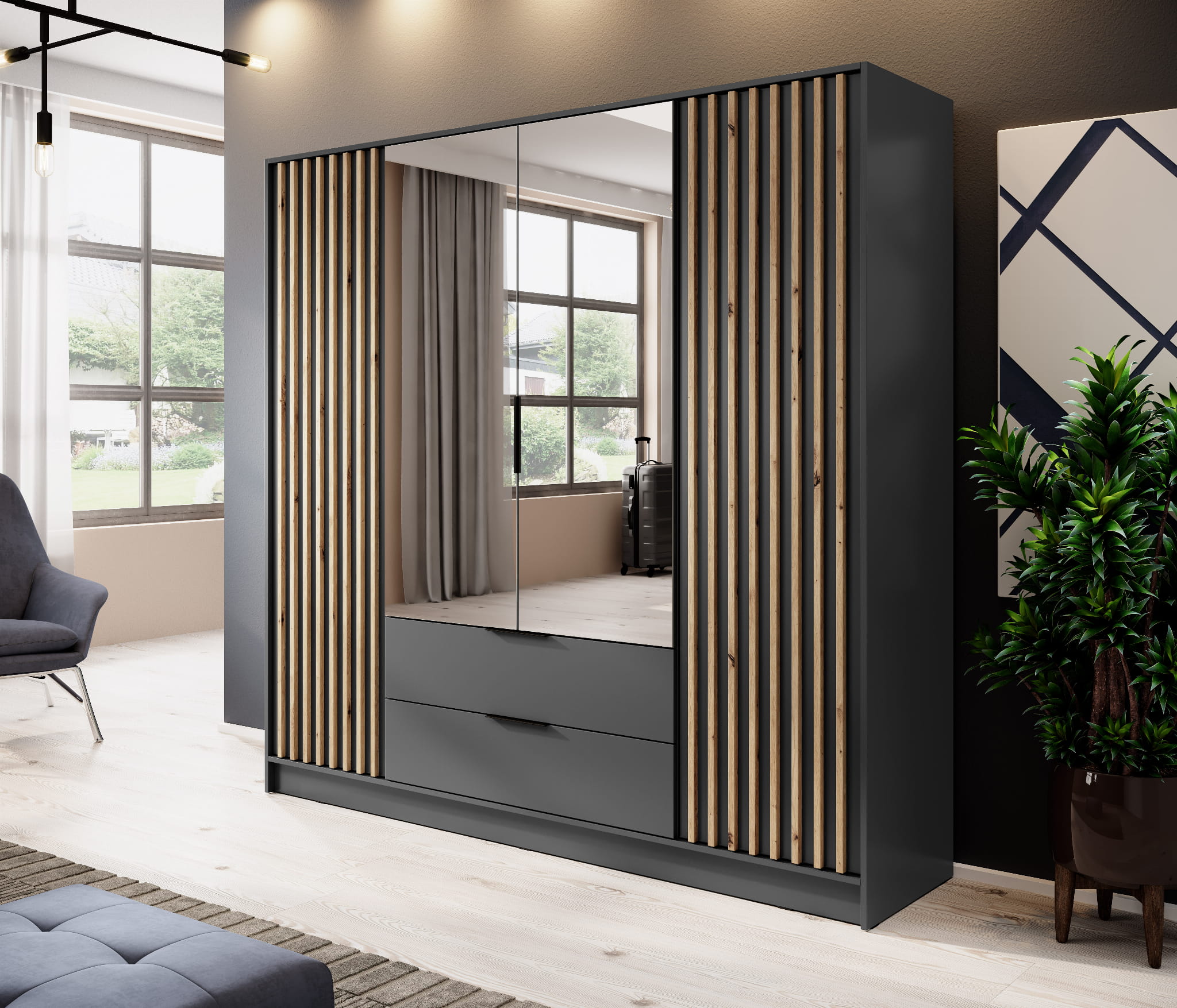 Nelly 4D grafit / dąb artrisan z lustrem
