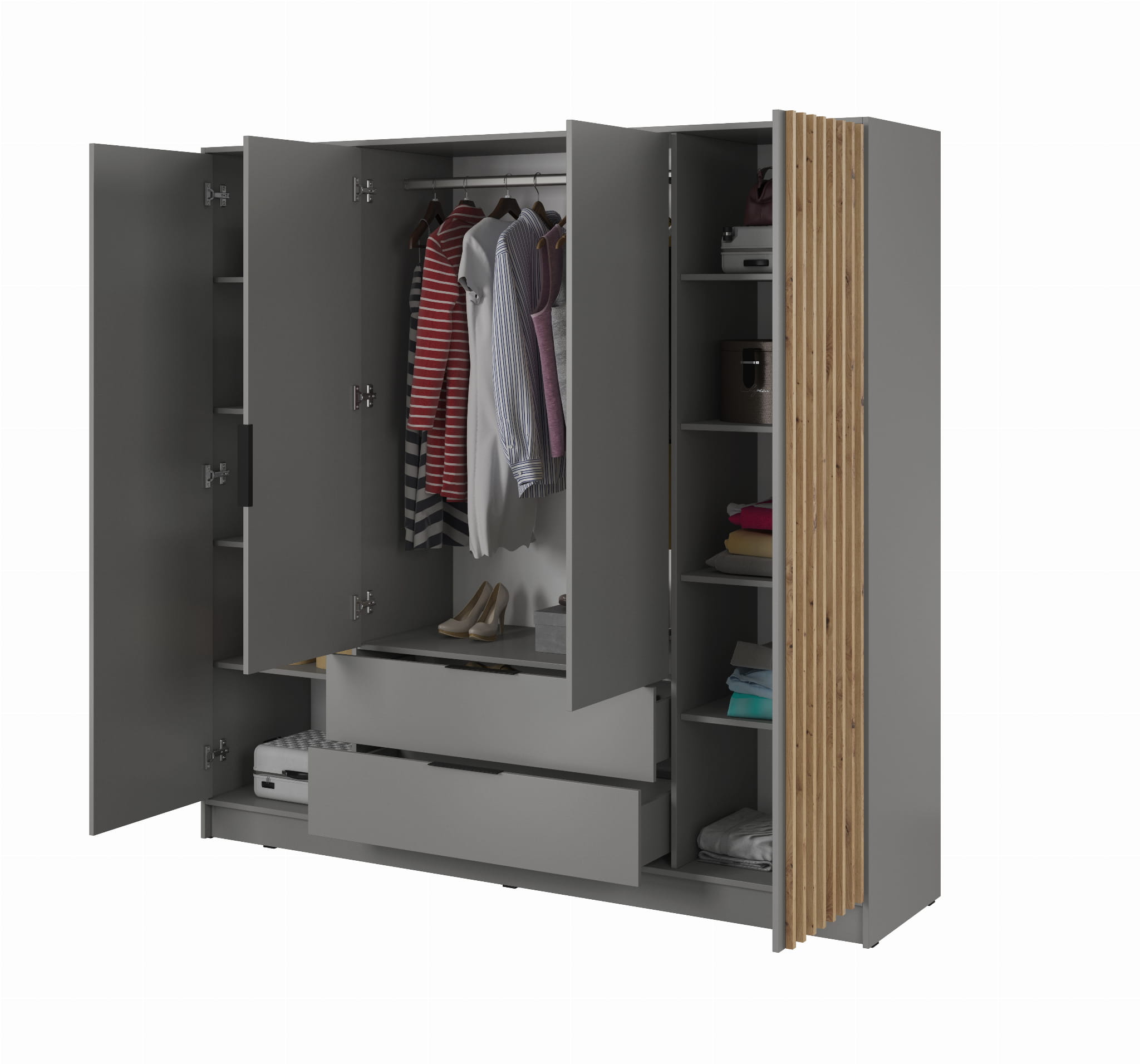 Front: płyta laminowana 16mm; obrzerze ABS 0,5 mm; lamela o profilu 18x18 mm; drzwi uchylne