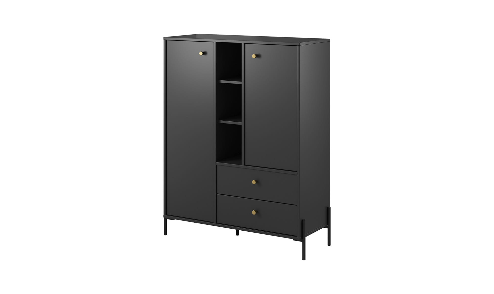 Oryginalna kolekcja z praktycznymi rozwiązaniami w modnym zestawieniu kolorystycznym surowego antracytu. Charakterystyczne nóżki oraz złote uchwyty nadają bryłom lekkości i nowoczesności.