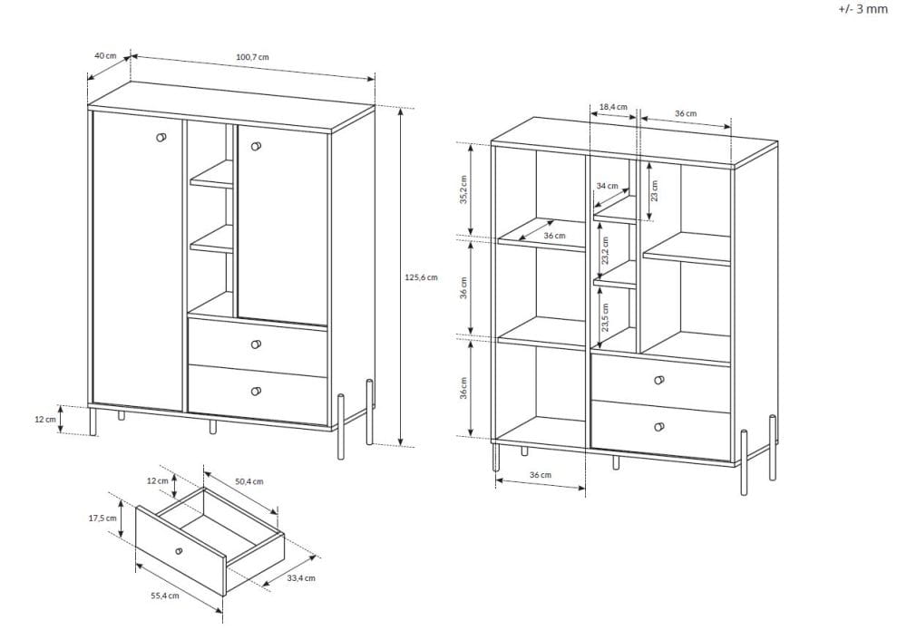 - szerokość 100,7 cm / wysokość 125,6 cm / głębokość 40 cm