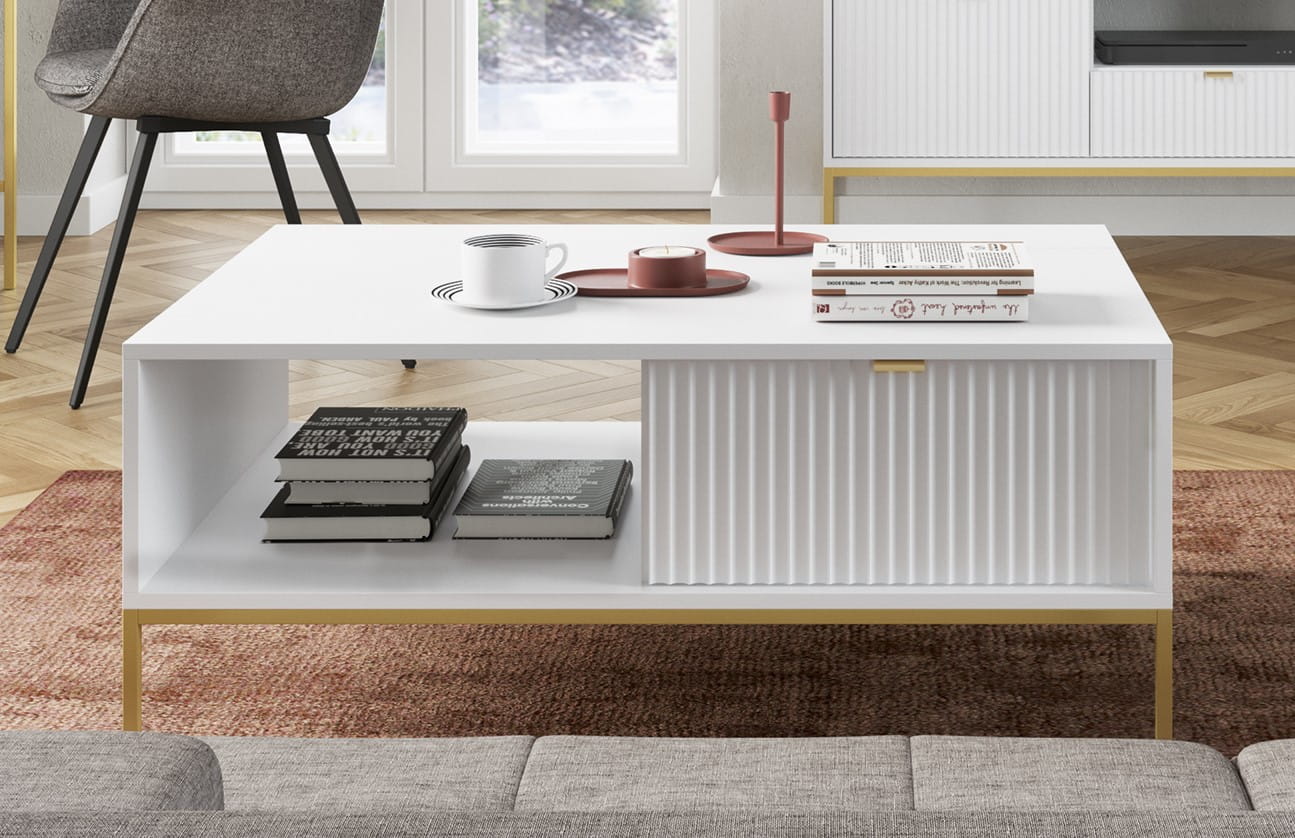 Prosta ale elegancka forma z dekoracyjnym ryflowaniem na frontach to must have dla miłośników nowoczesnego designu.