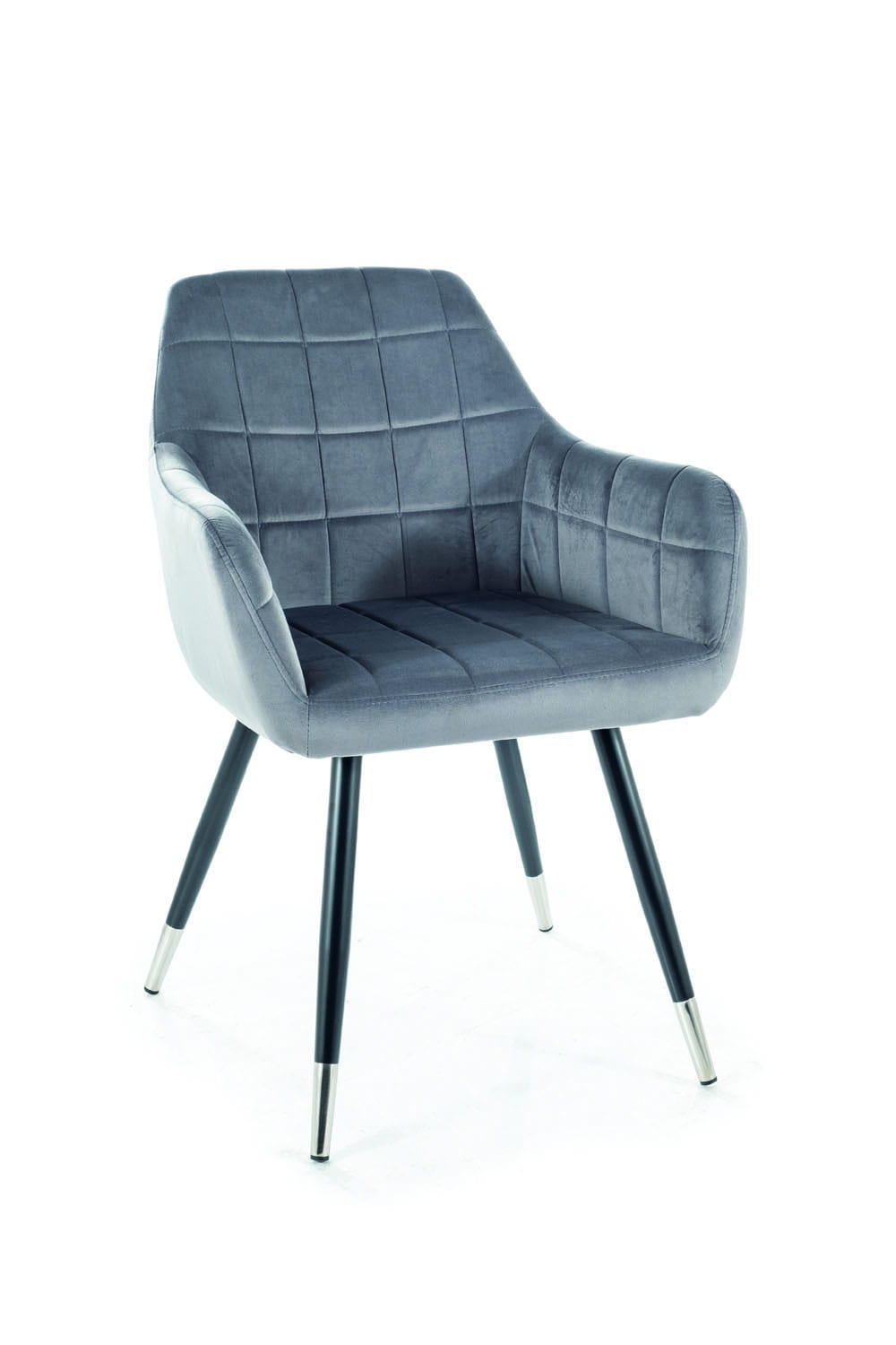 Krzesło, tkanina aksamit: Bluvel, kolor: szary 14 / metal. czarny mat + chrom.