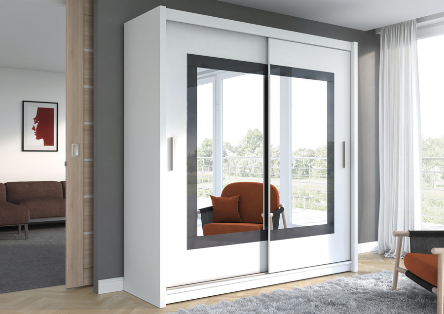 Wyposażenie: aluminiowe prowadnice, dolne wózki na łożyskach, 2 drążki, półki, listwa dekoracyjna