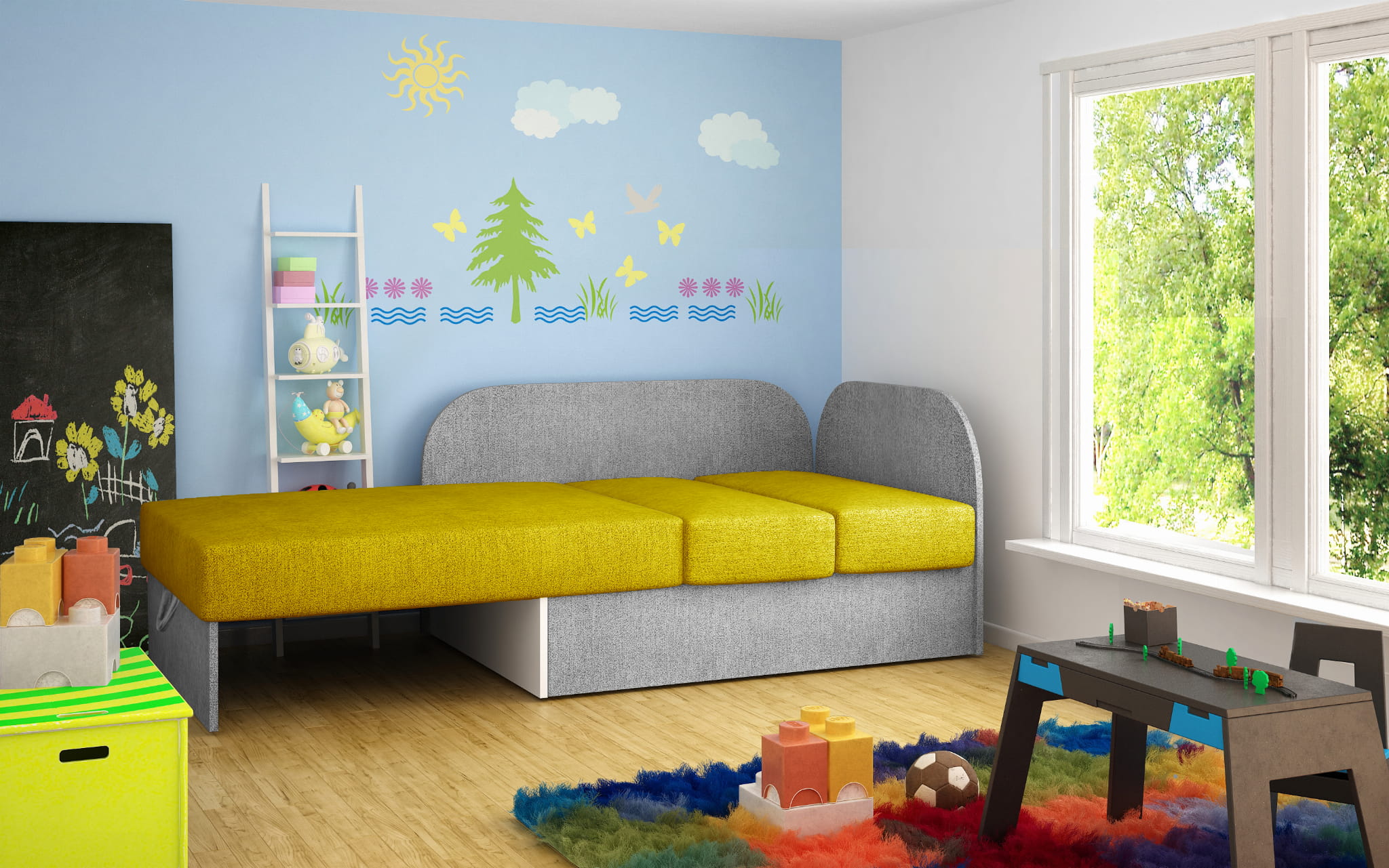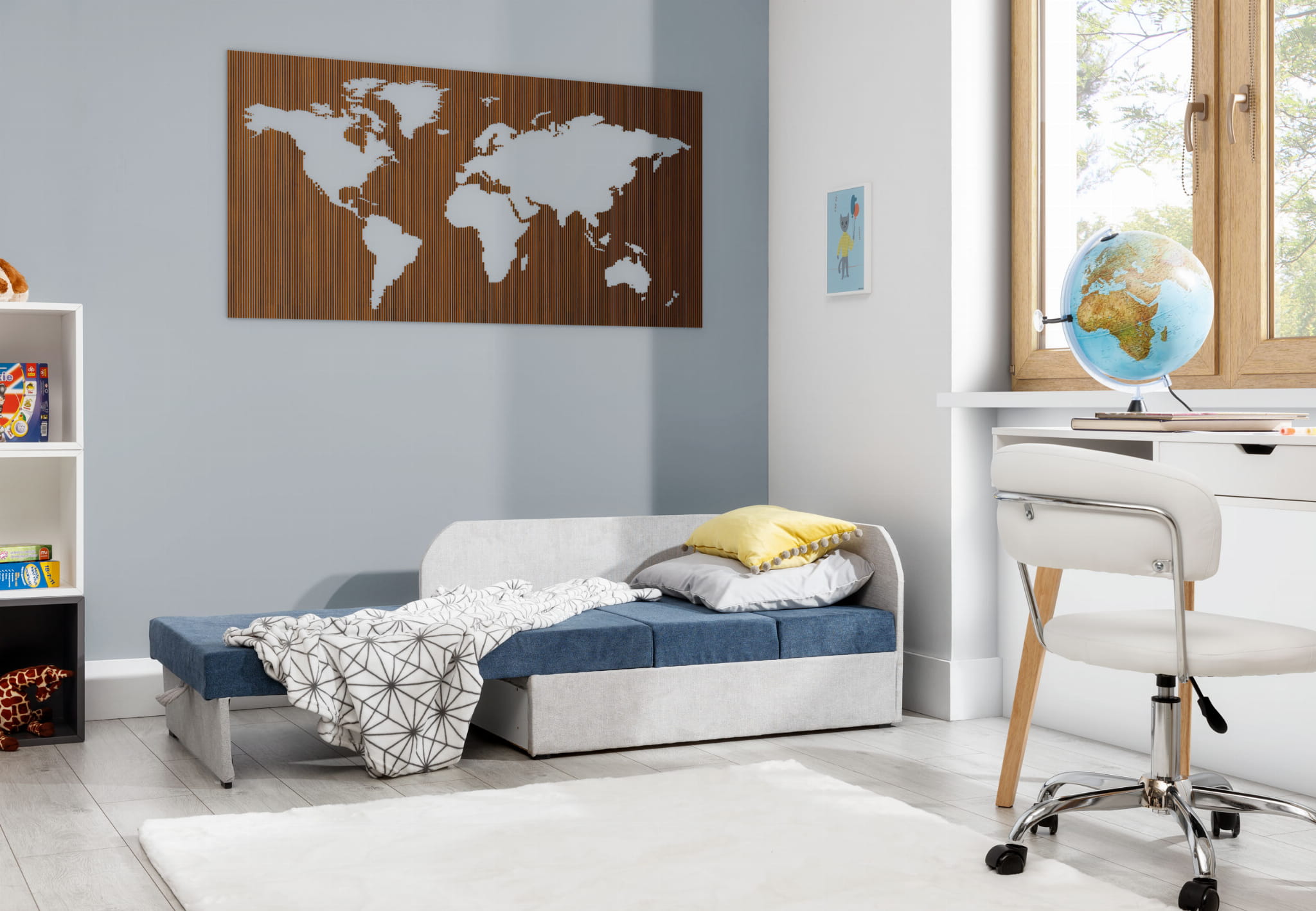 Pokój dziecięcy powinien być przytulny i praktyczny, aby mógł pełnić zarówno funkcję bawialni, sypialni, jak i miejsca do odrabiania lekcji w przyszłości. Wybierając łóżko dla malucha, warto zatem zdecydować się na wielofunkcyjny mebel, który będzie zarówno wygodną kanapą w ciągu dnia, jak i przestronnym łóżkiem w nocy. Model Rosa będzie idealnym wyborem. Kanapa posiada wymiary 104x75x60 cm, w związku z czym mebel można swobodnie wkomponować w przestrzeń pokoju bez zajmowania nadmiernej ilości miejsca. Po rozłożeniu kanapa przeradza się w wygodne łóżko o przestrzeni 73x166 cm, która zapewnia wygodę podczas snu. Mebel posiada prostą konstrukcję, dzięki czemu idealnie wkomponuje się w aranżację pokoju malucha, tworząc spójną całość z pozostałymi elementami dekoracyjnymi. Kanapa została utrzymana w kolorystyce łączącej ze sobą dwa odcienie - oparcie i siedzisko posiadają jednolity kolor, natomiast dół mebla i boki są utrzymane w kontrastowym odcieniu. Możliwość samodzielnego wyboru zestawienia kolorystycznego sprawia, że kanapa Rosa zachwyci każdego malucha, trafiając w jego gust.